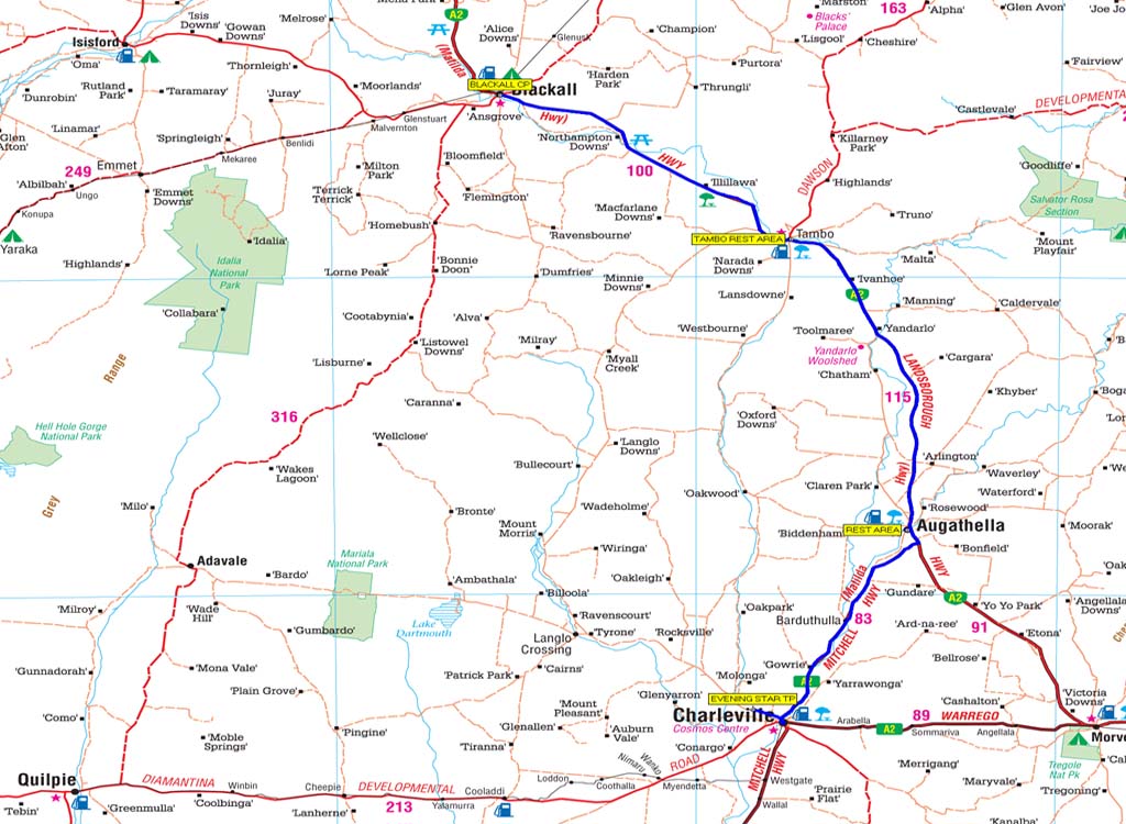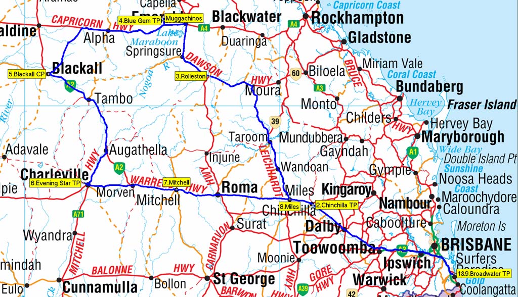 Leaving Blackall and staying at Evening Star TP, Charleville.