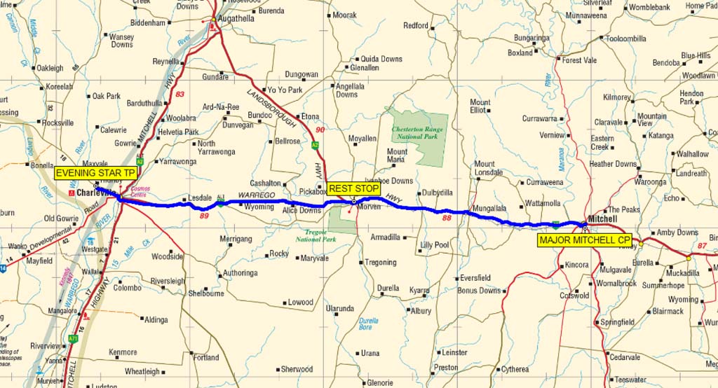 Major Mitchell CP to Miles Crossroads CP - 228kms.