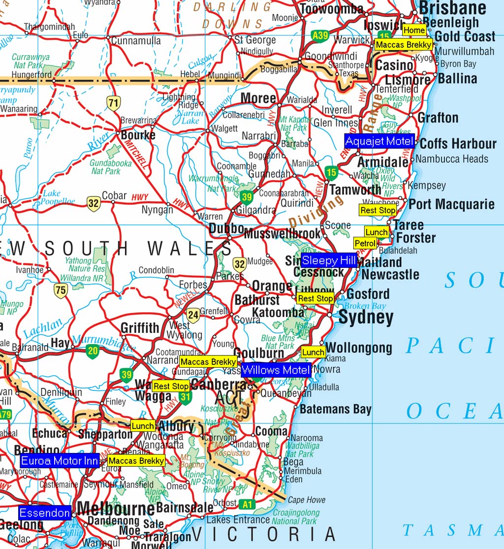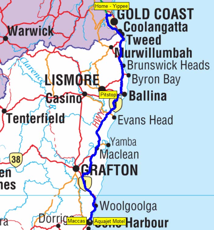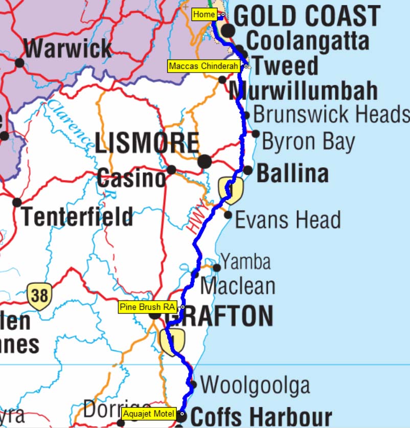 Our route from Home to Coffs Harbour, NSW - 325 kms.