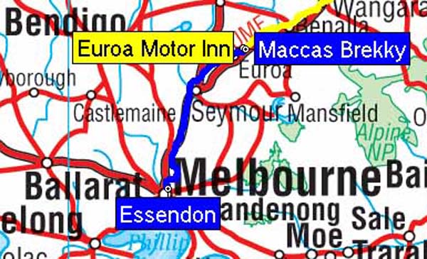 Our route from Euroa to Essendon - 160 kms.