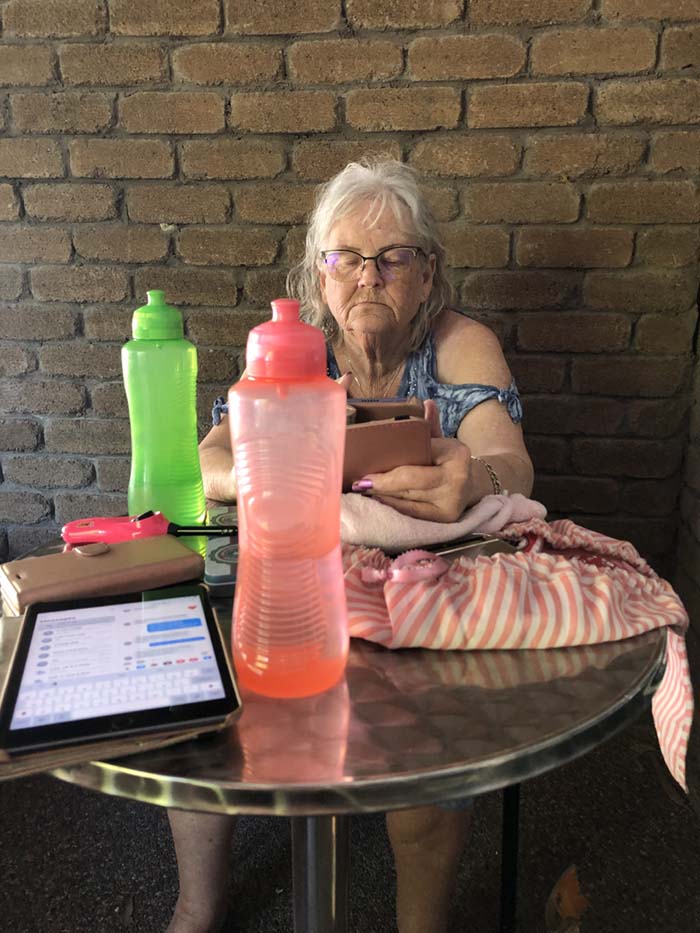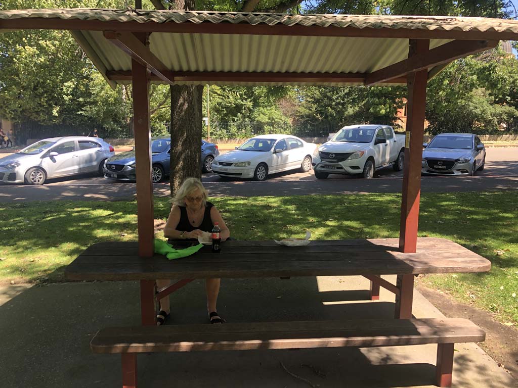 About lunchtime, Marg and I visited our old house in Mordy and then stopped for lunch at Thrift Park, where we caught up with Ash who works in the tobacco shop, which Marg has used for many years.