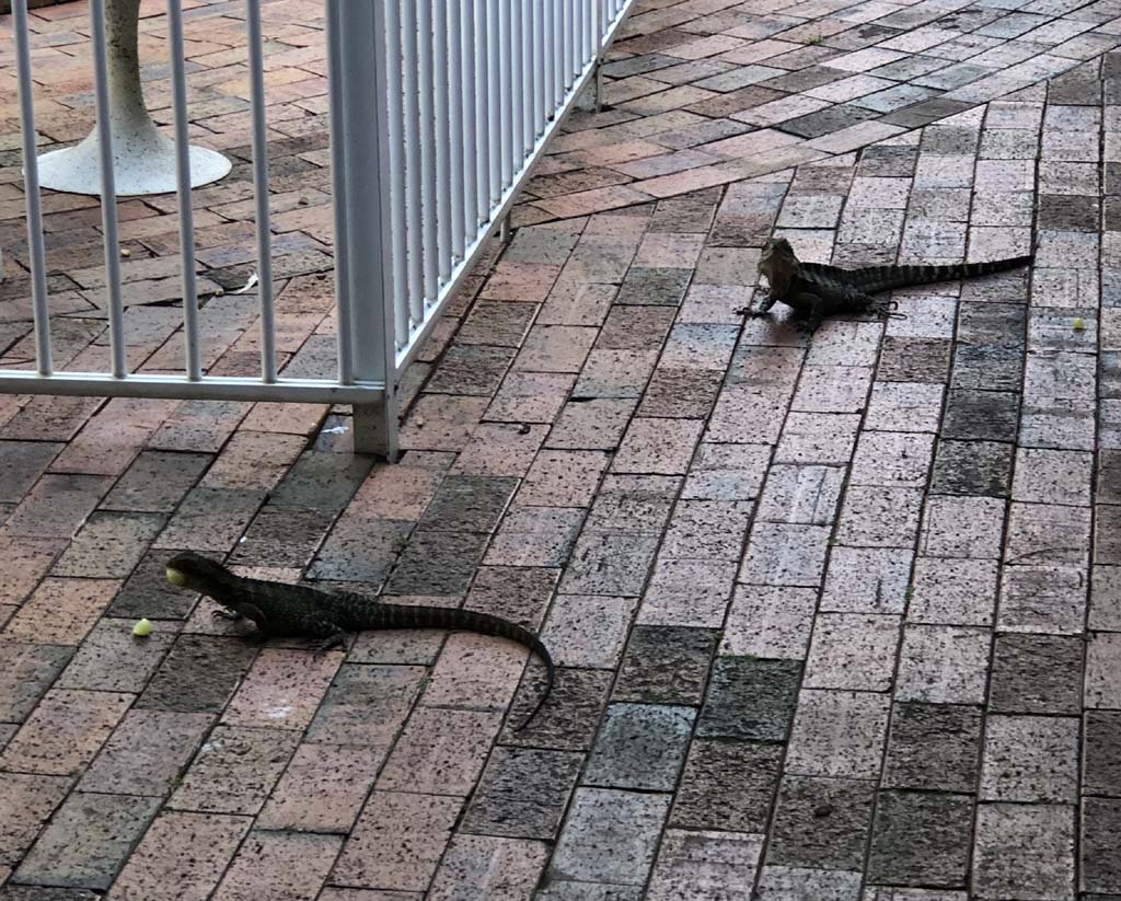 We unpacked and had a swim to cool off and as we were sitting outside our room, we noticed a water dragon about a meter away. As it turned out, that was 'Mumma' water dragon, by the end of the arvo, there were 8 water dragons walking around. They were absolutely beautiful.