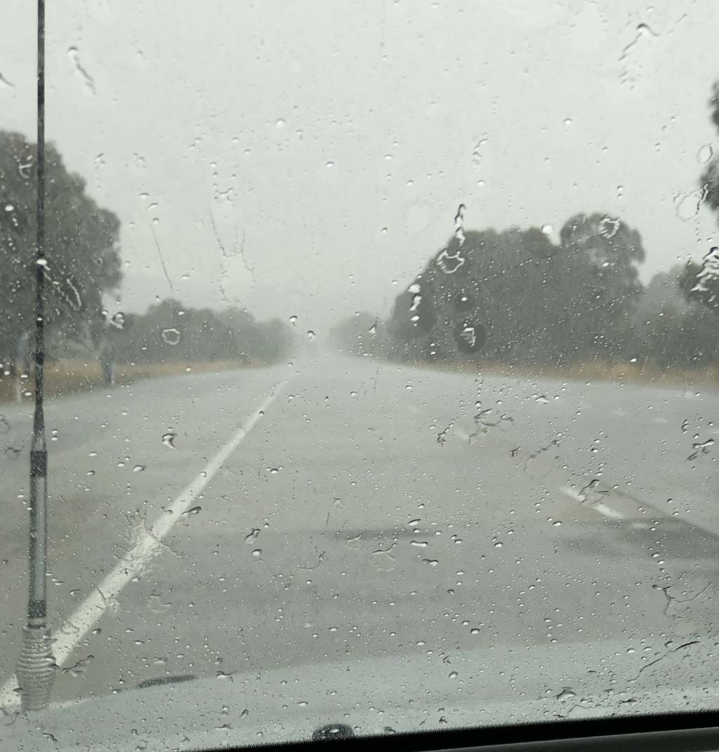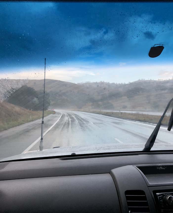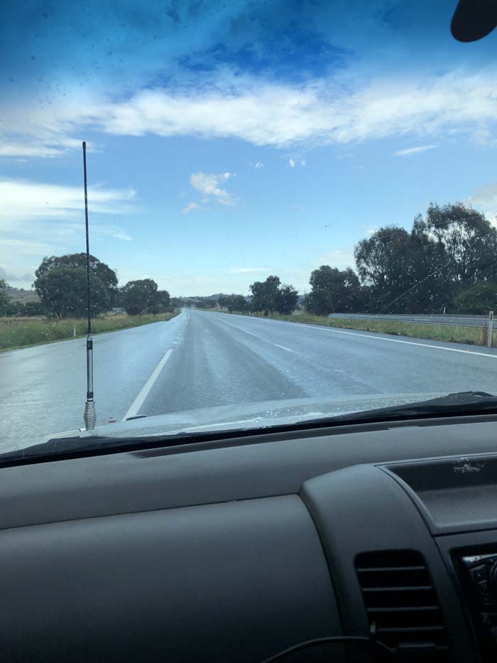 The weather was cooler and near Gundagai, it absolutely pissed down. We have never seen rain as thick as it was. It only lasted a few minutes and then the sun broke through again.