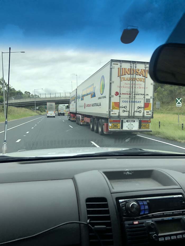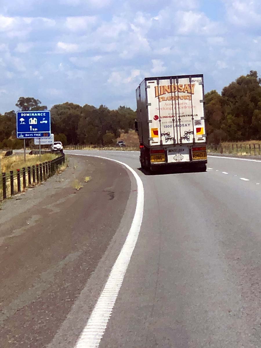 The weather was pleasant, sunny with a light wind. Again the traffic was very light. We set cruise and most of the time, sat in the left lane, about 100 meters behind B Doubles who were sitting on 100kph.