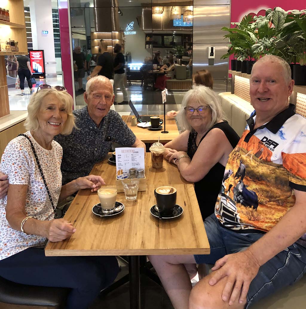We had our family photo at 'my' coffee shop late morning. As we were walking through Southland back to the truck, I heard someone call out "Wayne". I turned around and SHOCK, HORROR, one of my best mates since school MURF and his wife Robbie were there. I nearly died... Unbelieveable, that Murf was there, I haven't seen him for about 10 years.
