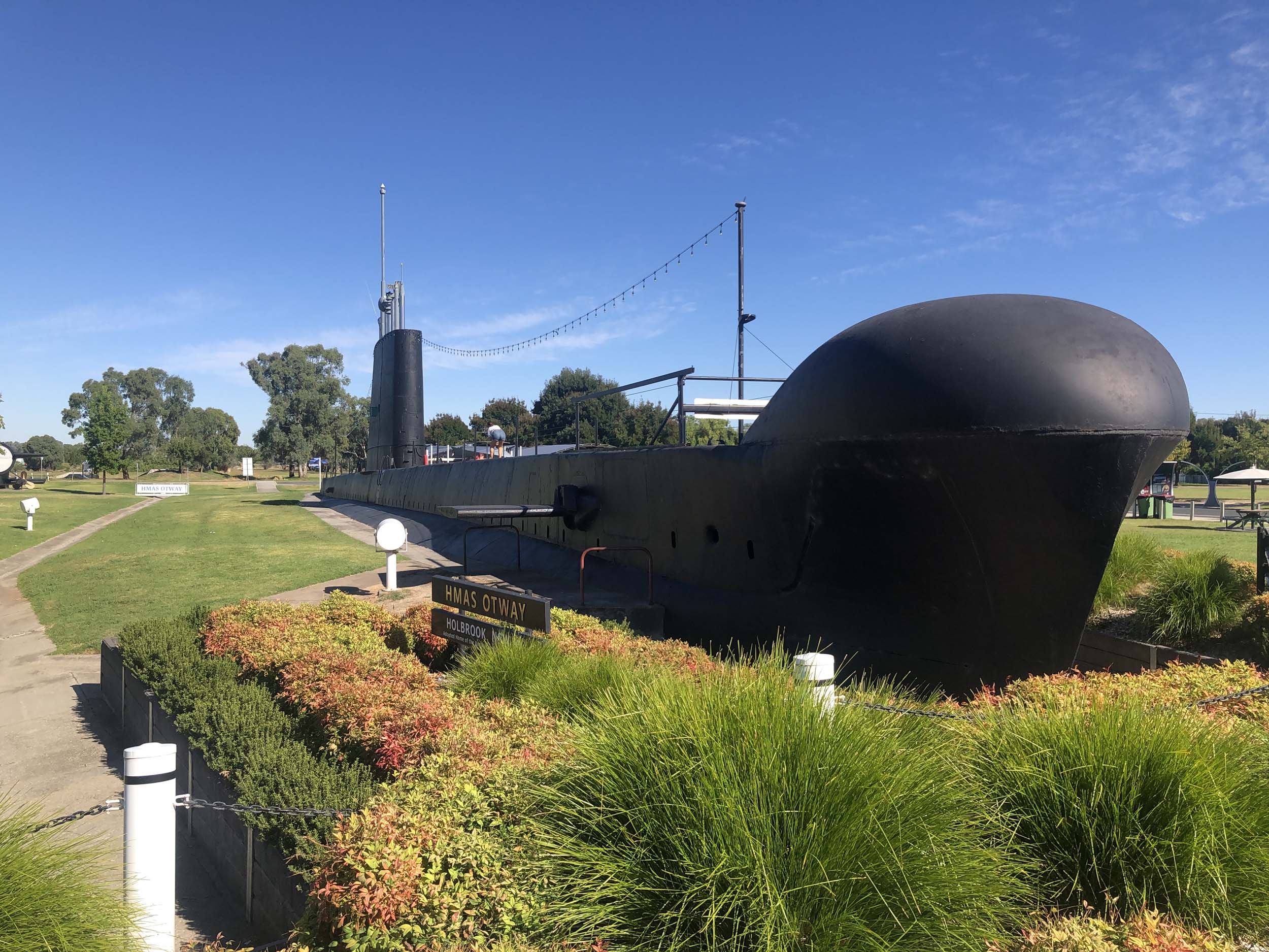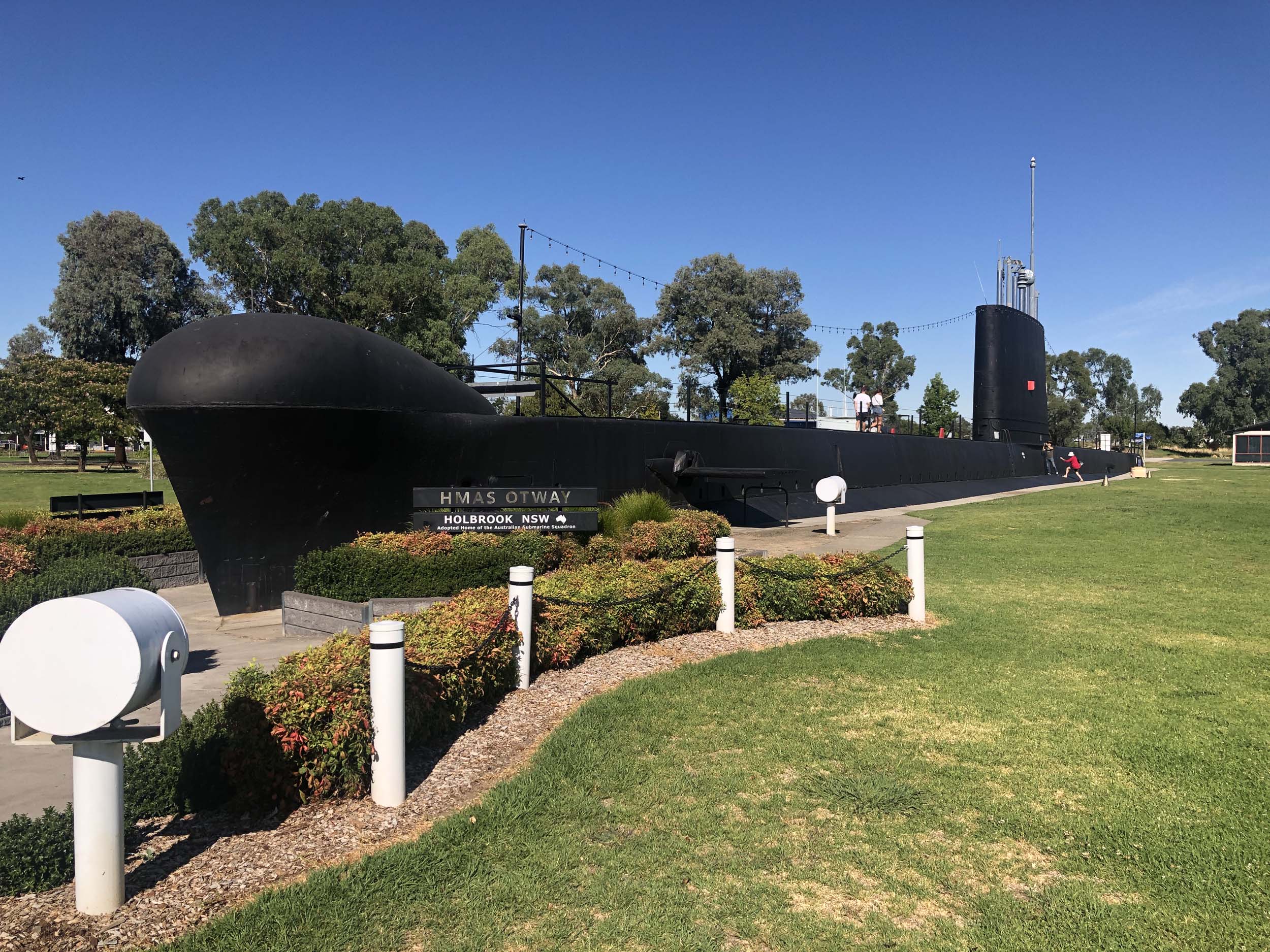 We stopped at Maccas Lavington for brekky, then stopped at Holbrook to take photos of the HMAS Otway Submarine. continued onto Tarcutta for a pitstop. We continued on to the next stop, which was at Gundagai-The Dog on the Tuckerbox. After a further 2 hours, we stopped at the Dalat Bakery in Goulburn and bought pies for lunch and sangas for dinner. We drove over to the local park and ate lunch, then drove the couple of kms to the Willows Motel.