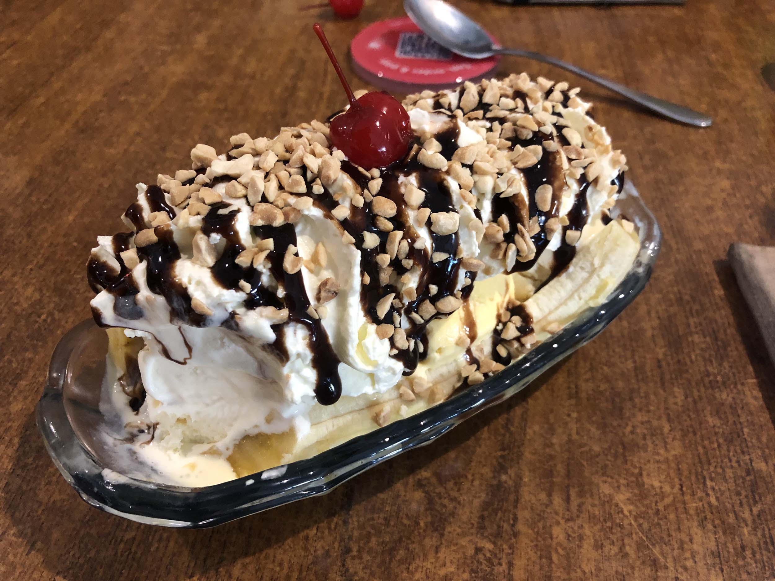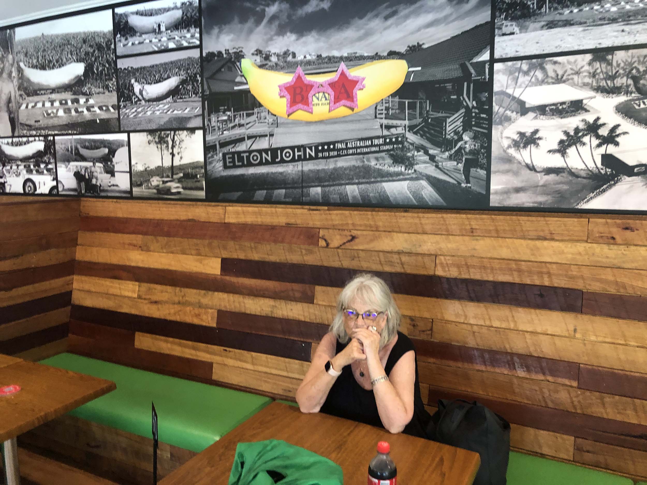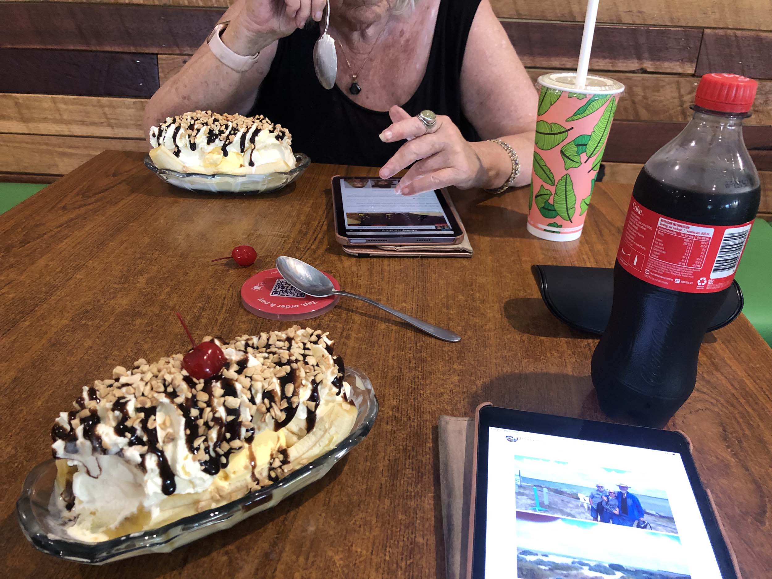 We stopped at Maccas Raymond Terrace for brekky, then after 139km, we pulled into the South Taree Truckstop for a pitstop and while there we bought sangas for dinner. We continued non stop to The Big Banana, for lunch and too waste time. Check out the photos of the Banana Sundaes. Absolutely YUMMA.