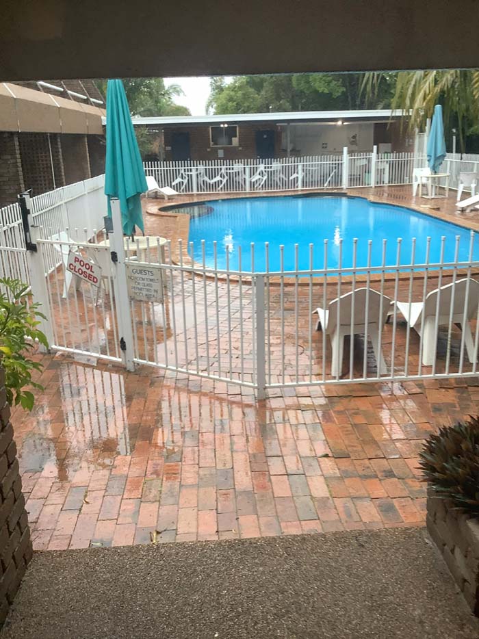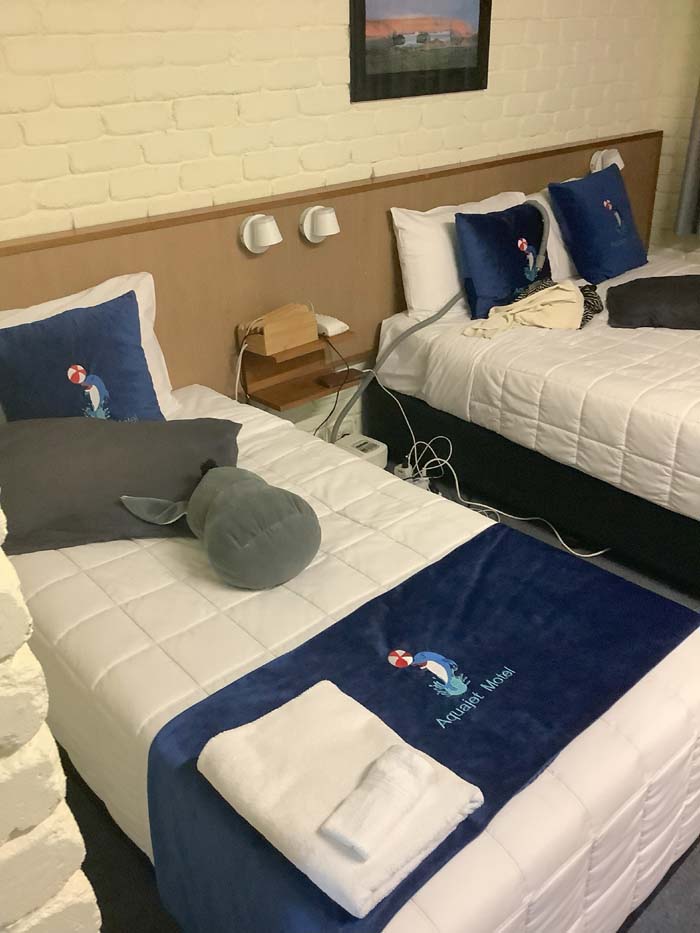 We left the Big Banana and arrived at Aquajet Motel, where we unpacked and relaxed during the afternoon. Marg visited the barbie area, which allowed smoking, while I laid on the bed watching telly and relaxing.