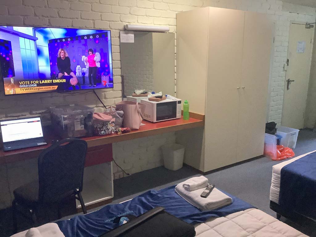 We unpacked and relaxed during the afternoon. Marg visited the smoking room, while I laid on the bed watching telly and relaxing.