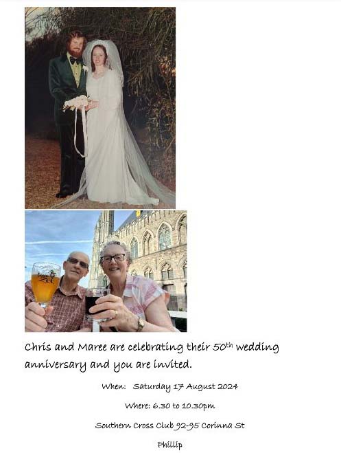 Tomorrow, we celebrate Chris and Maree's 50th Wedding Anniversary.