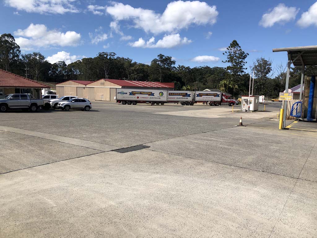 We knew Mark Lindsay who was one of the sons of the founder of Lindsay Bros Transport. Mark had a son Peter who back in the late 80s used to compete against our eldest son Jay in BMX. Since then, whenever we went on long roadtrips, we have a competition where we would count each Lindsay Bros semi that we saw. We knew that their original headquarters was just south of Coffs. You can see the trucks from the highway. SO this trip with no 5th Wheeler in tow, I said to Marg that I would like to stop at Lindsay Transport and tell my story. She said that I was mad.