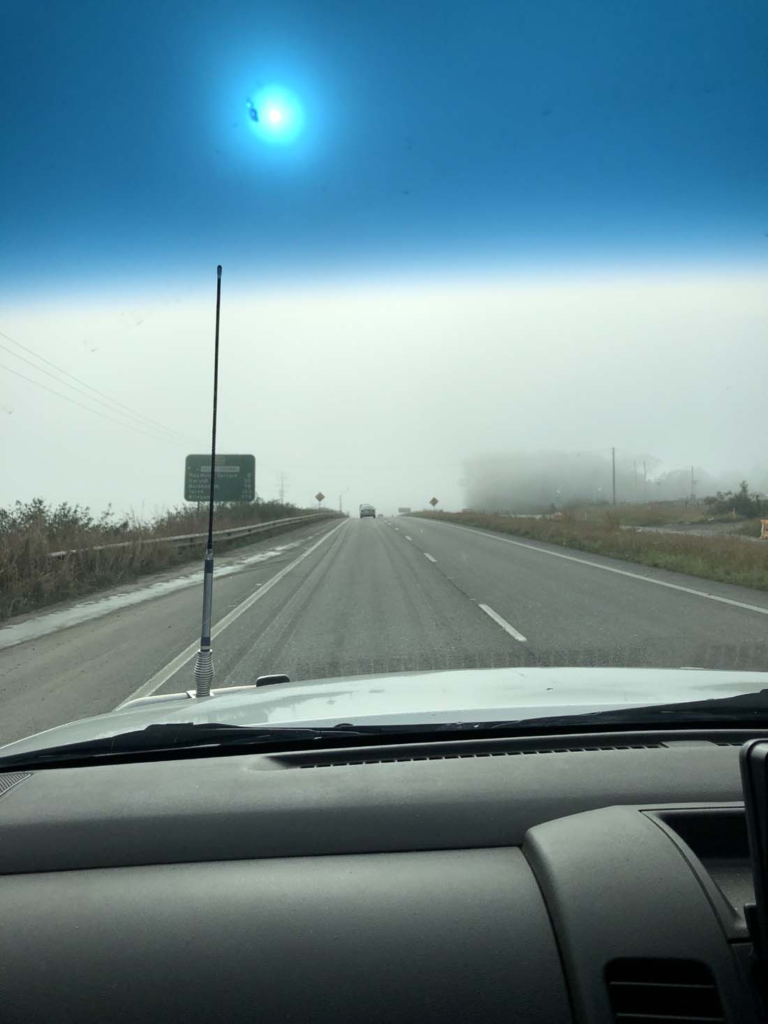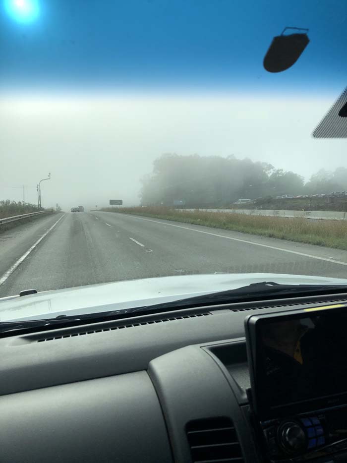 The weather was foggy at first, then sunny.