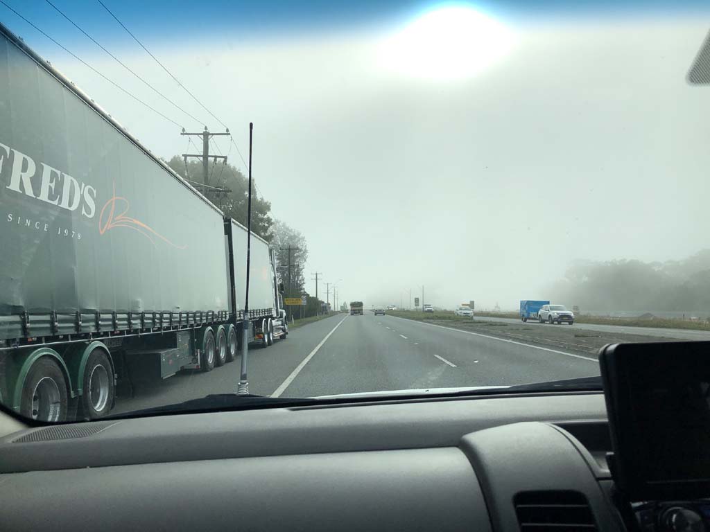 The weather was overcast. It pissed down once we entered NSW. At one stage you struggled to see the truck 50meters in front.