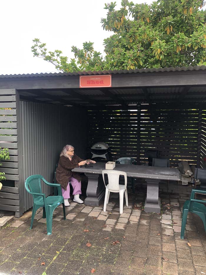 We unpacked and relaxed during the afternoon. Marg visited her Smokers Shed, while I laid on the bed watching telly and relaxing.