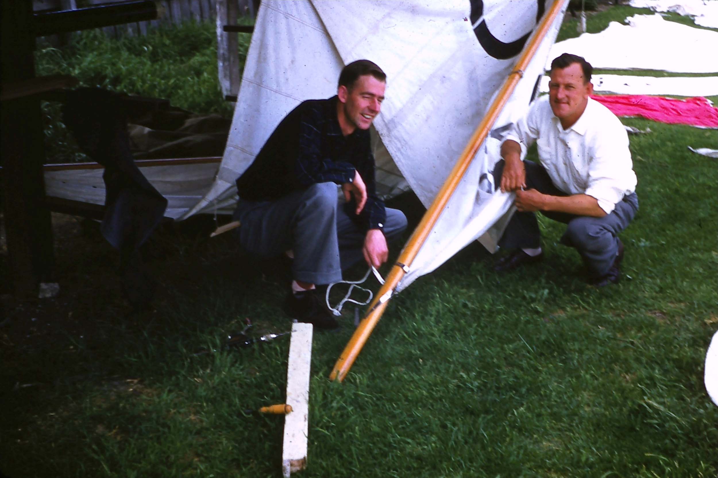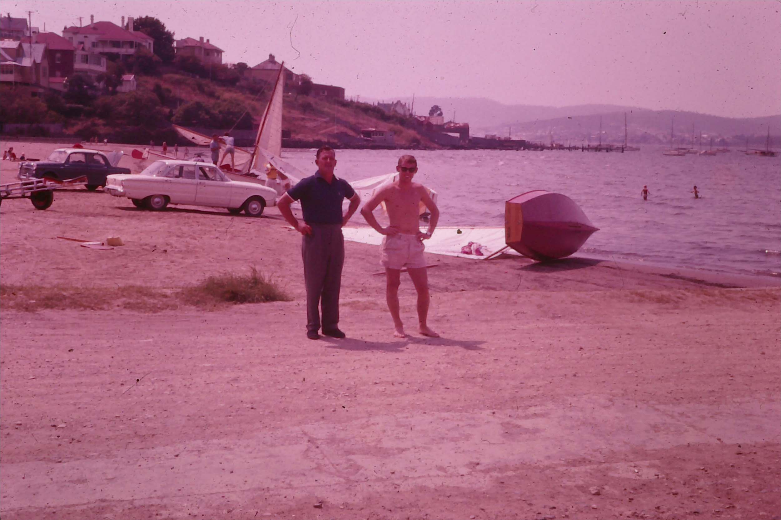 Dad told me that during the 1950s and 60s being a house builder and rather successful at that, he used to drink at the Beaumaris Hotel with his subcontractors. One of his drinking mates was Keith MacDonald who was building the first Lightweight Sharpie in Victoria, hence why he got V1.