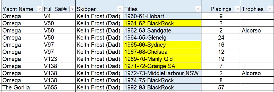 Frosty only sailed the Heavyweight for one season as it was the time of transition to Lightweight Sharpies.