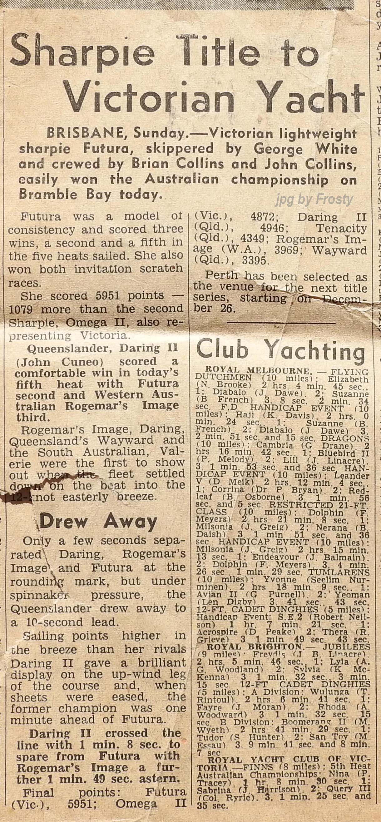 Ashley (Keith's grandson) asked me via a post on "Australian 12 Square Metre Sharpies - The Heavyweights" FB page, did I have any info on Keith. I thought the easiest way to show him what I have, is to create a webpage.