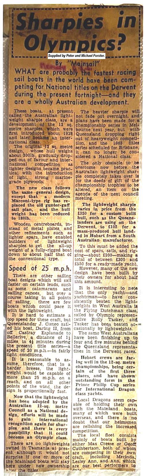 Australian 12 Square Metre and Lightweight Sharpie.