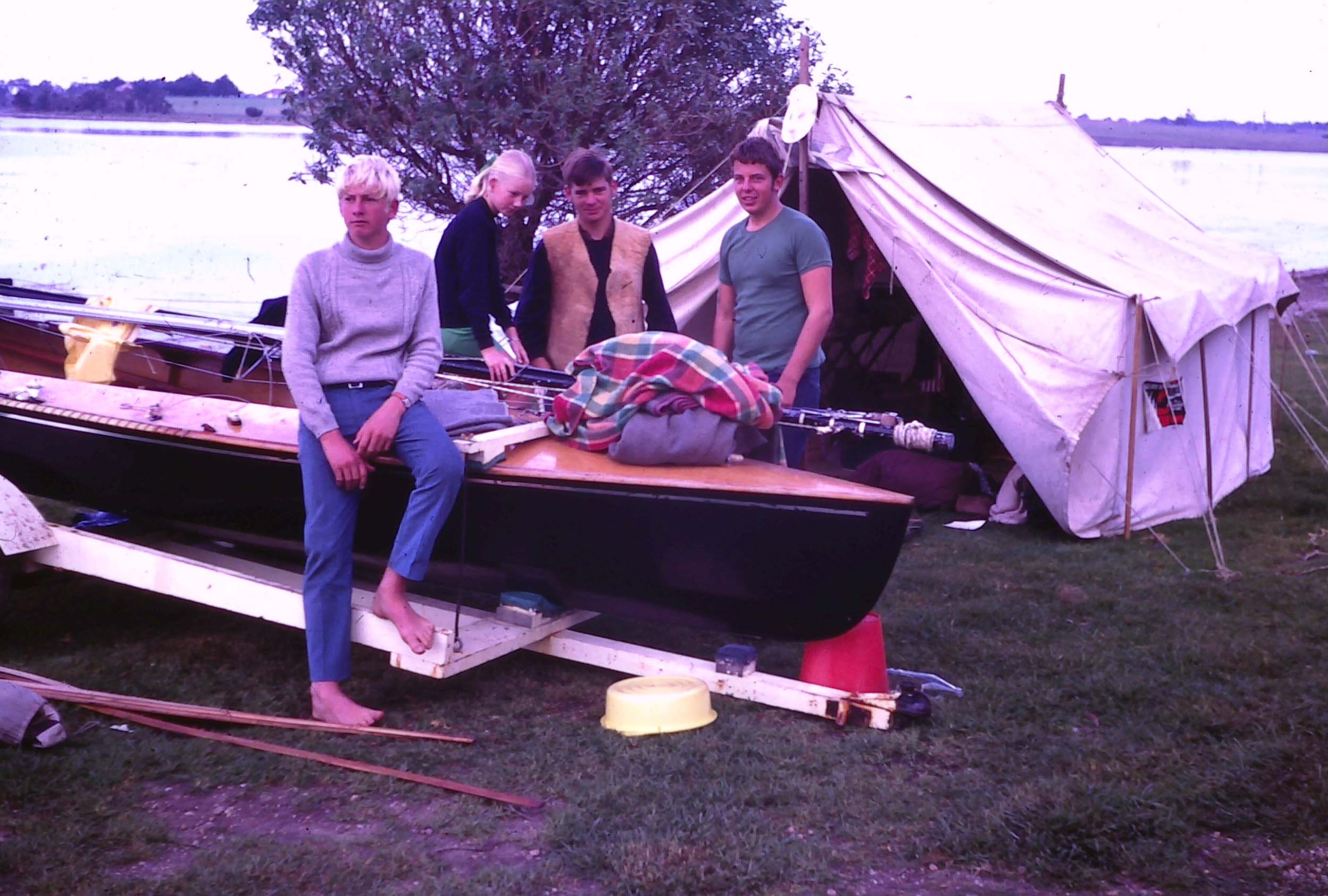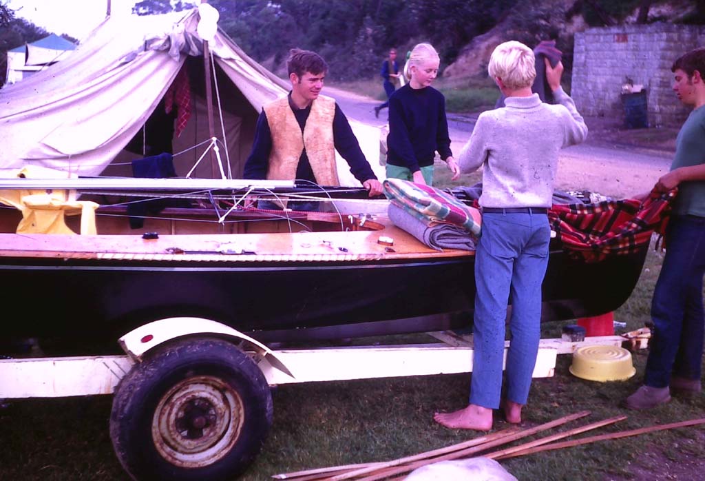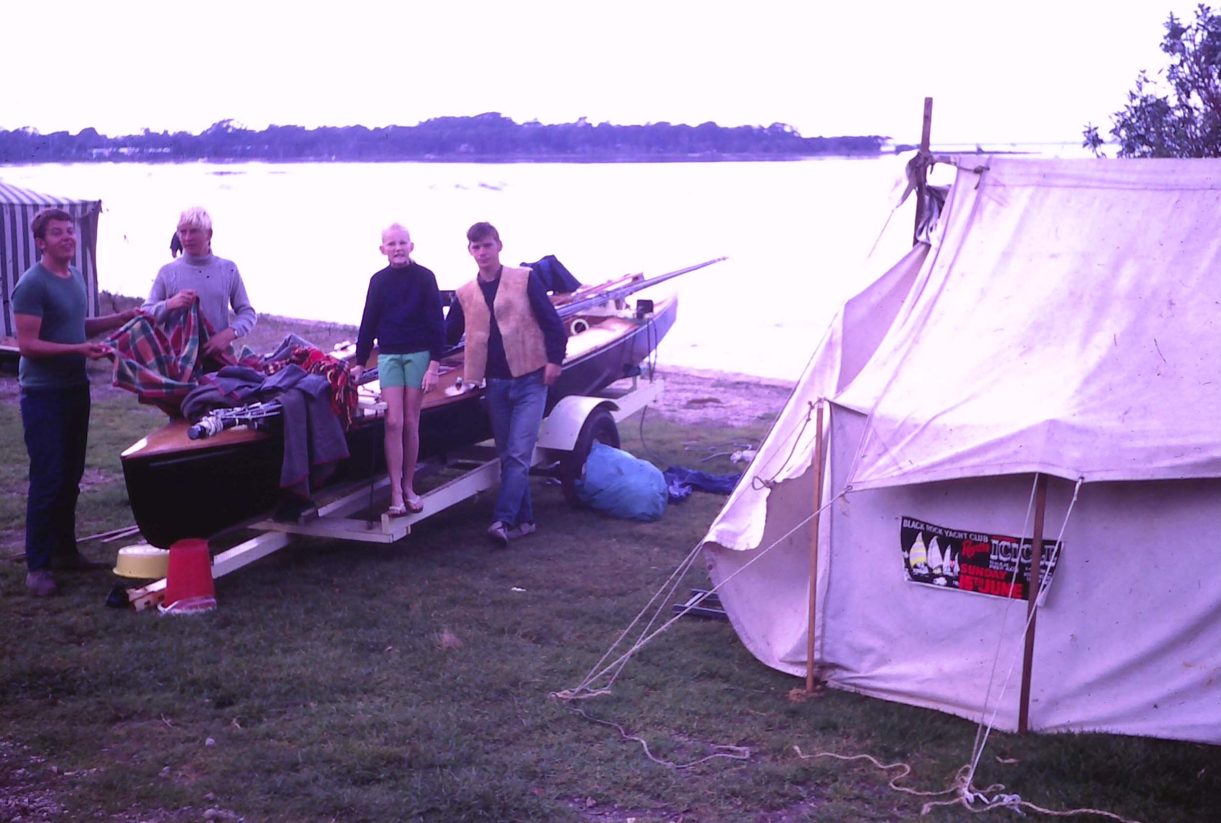 Check out the tent, it was my Pappy's. Notice the Icicle Regatta poster advertising the race on Sunday 15th June 1969. We used Dad's sails V123 as they were in better condition that our V97.