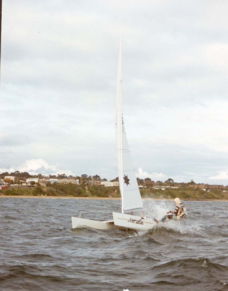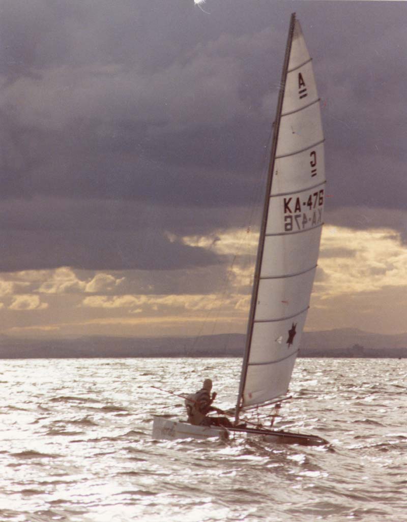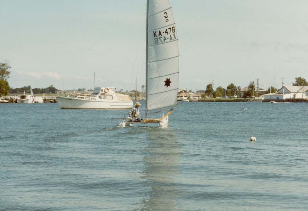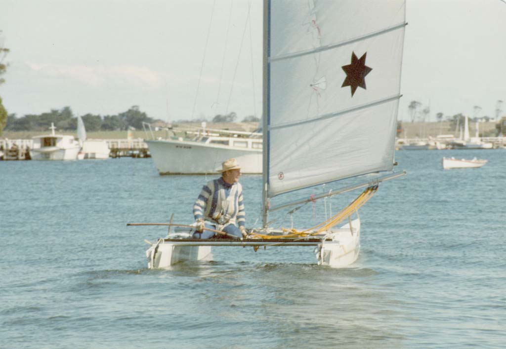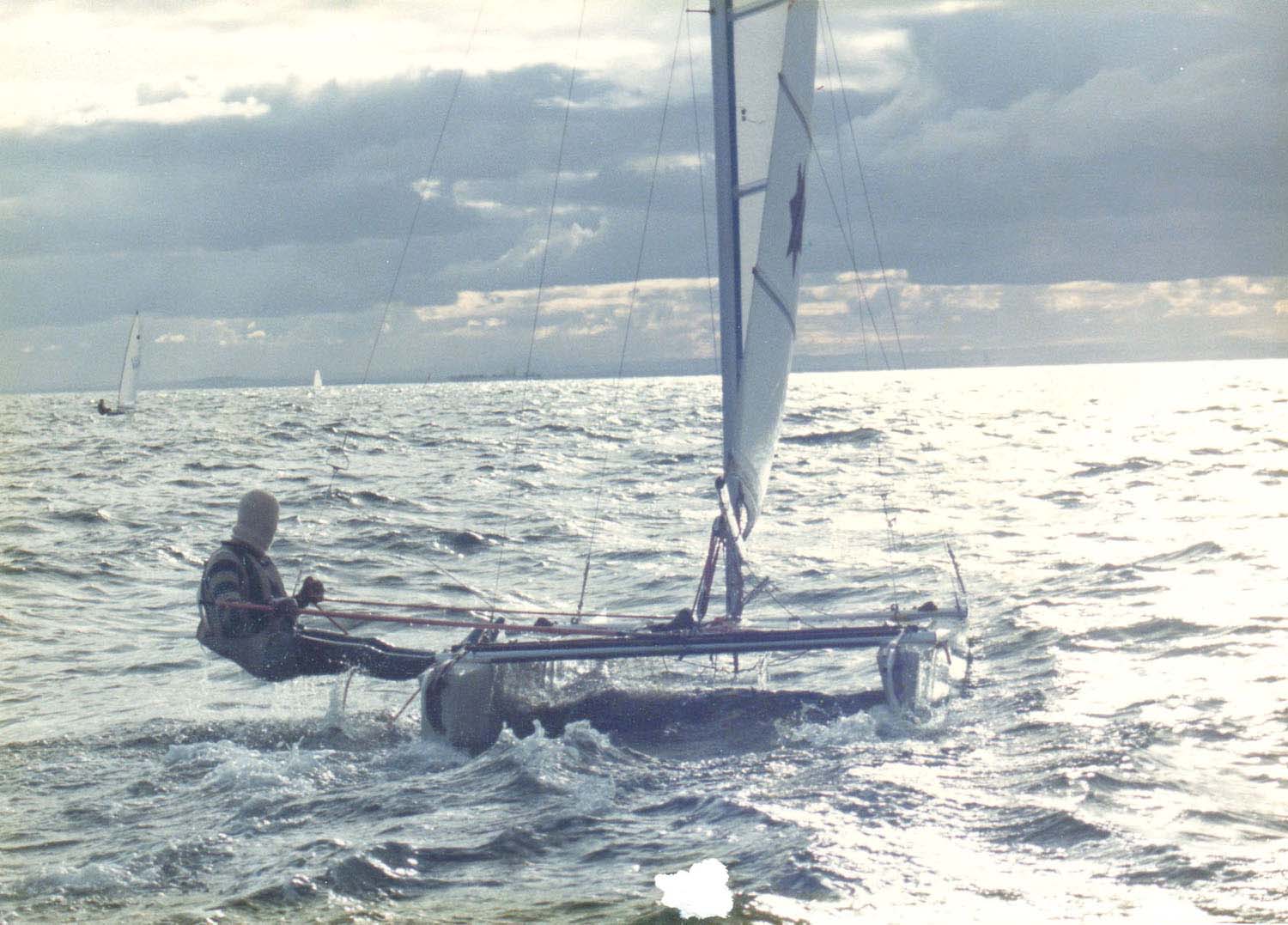 After sailing Sharpies, you got used to the speed of the class, so after a year or so without a yacht, I looked around for a one man boat that was quick. I settled on a Catamaran.