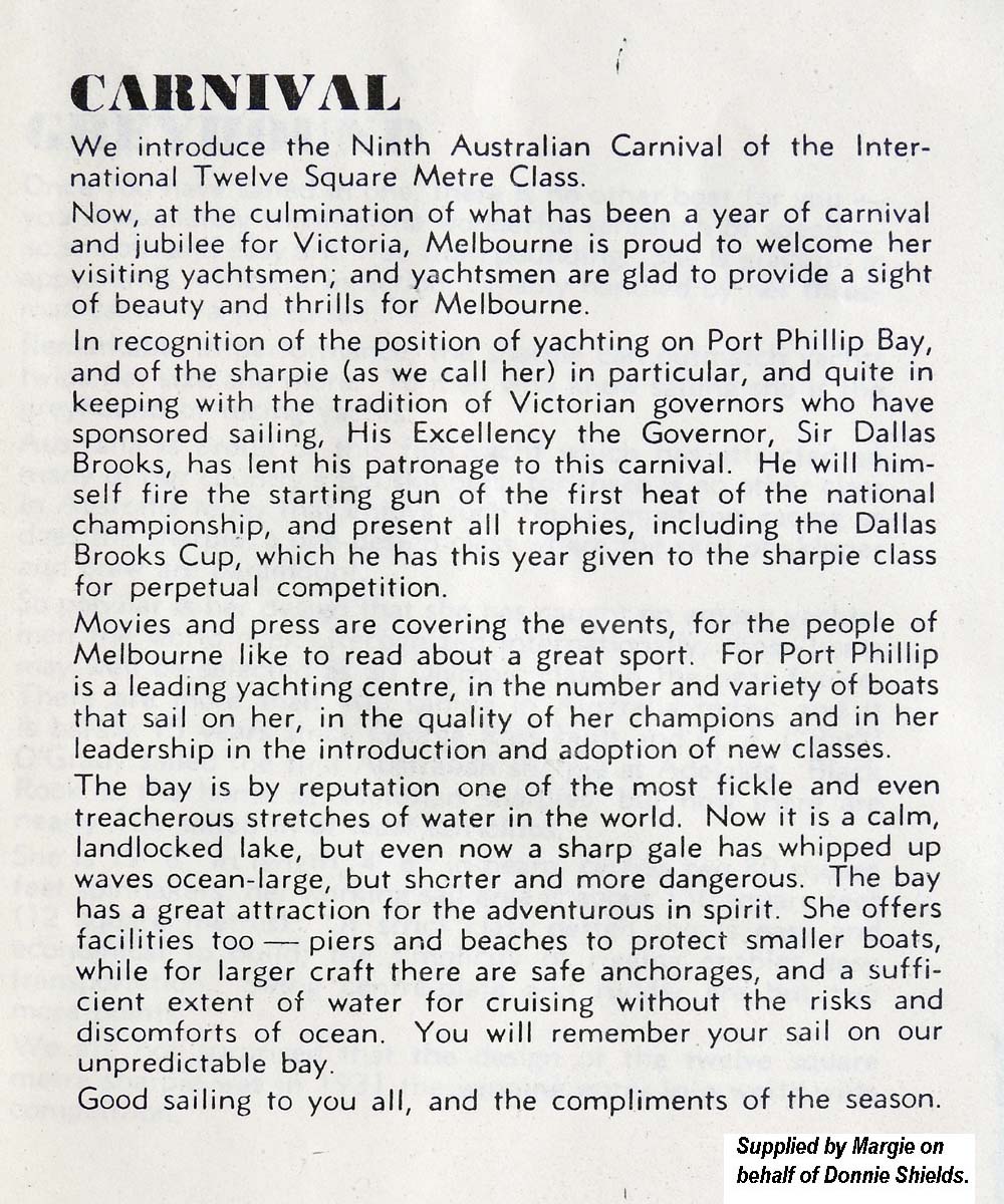 Here is a part of a letter that Margie wrote and sent with a copy of the 1951-52 programme and I quote.