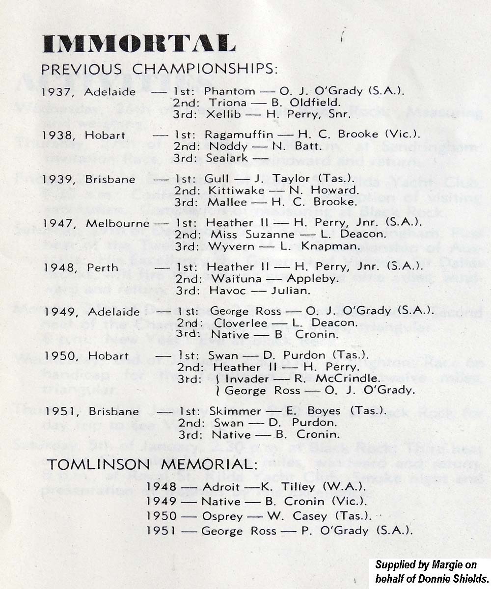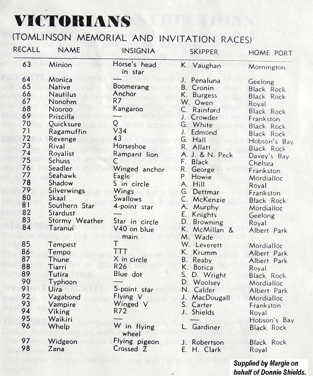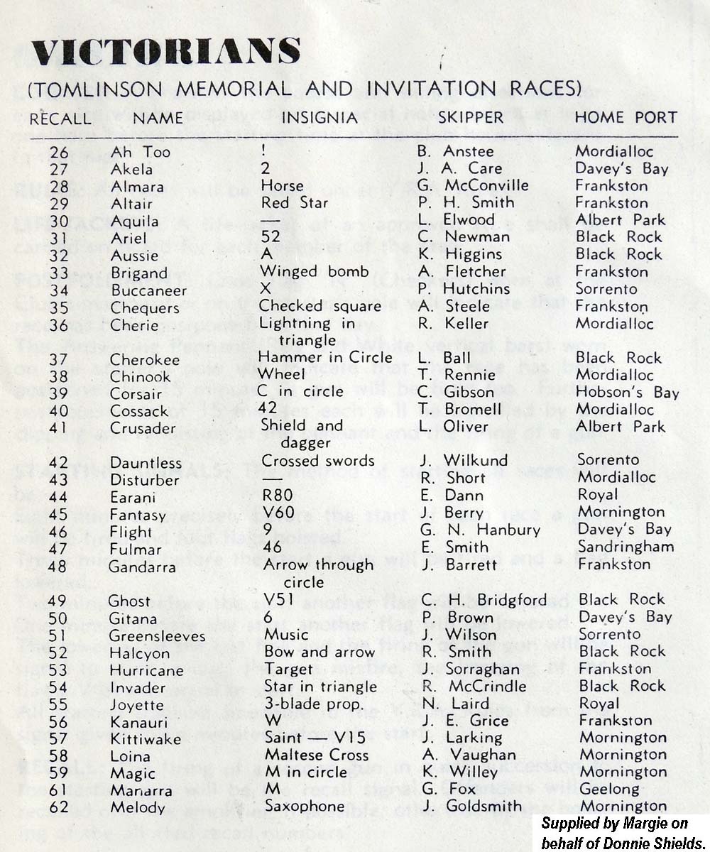 Tomlinson Memorial Race held at Brighton Yacht Club.