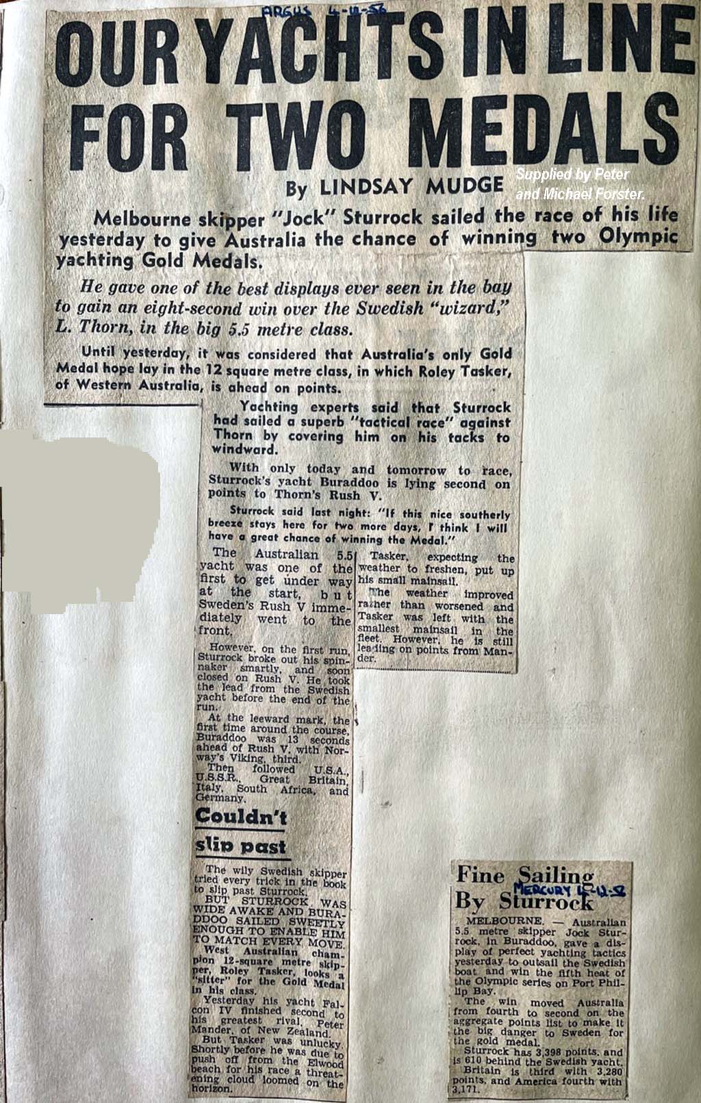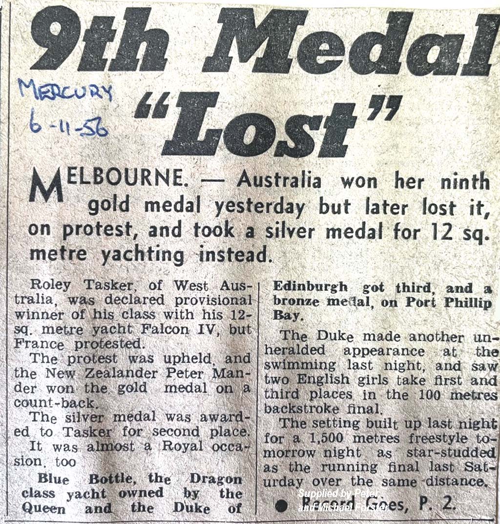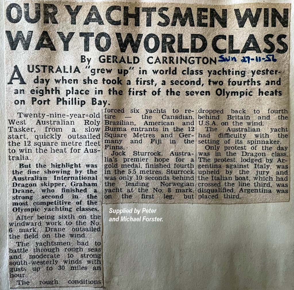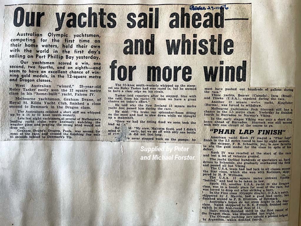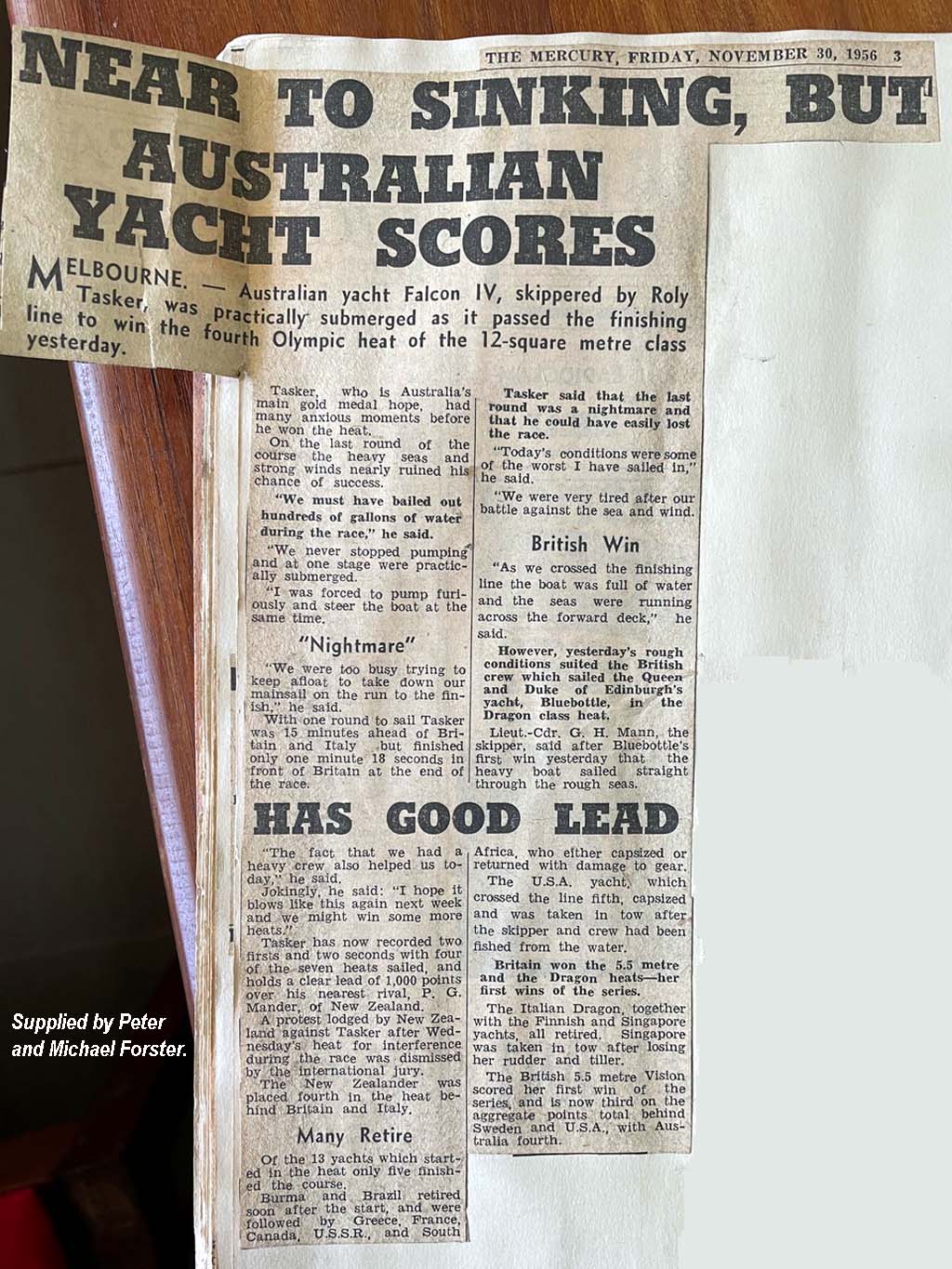 Peter had collected these newspaper articles and had them in his scrap books. (as at Sep 2023) He is 85 and he still sails regularly during the sailing season in Canberra in his Flying Fifteen.