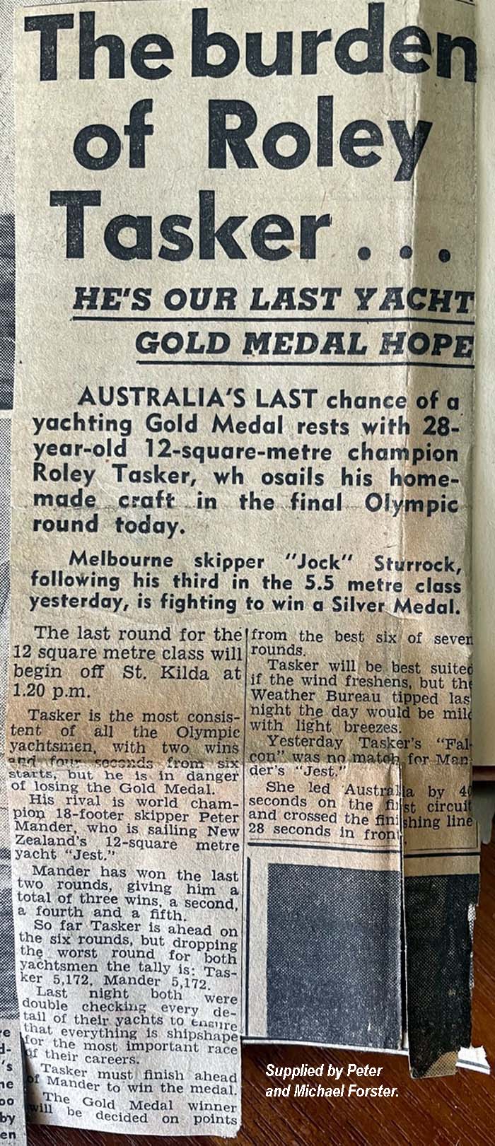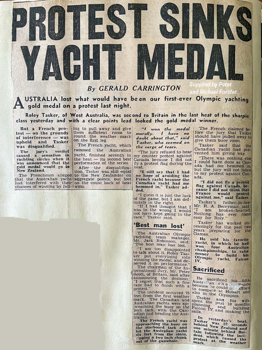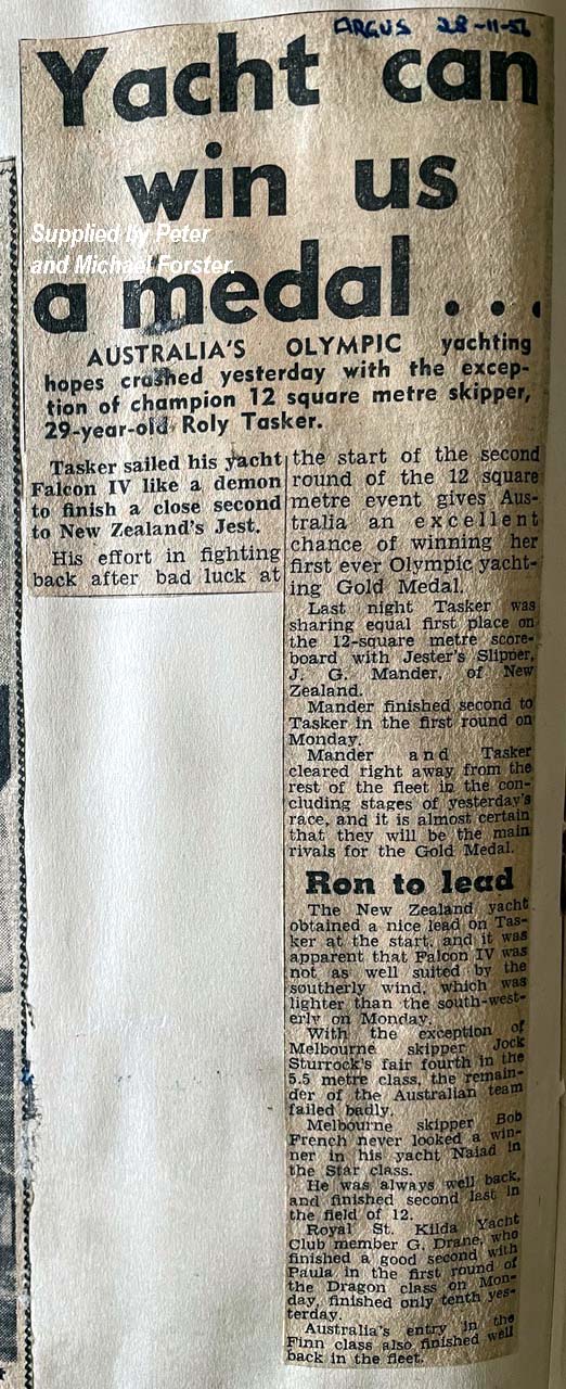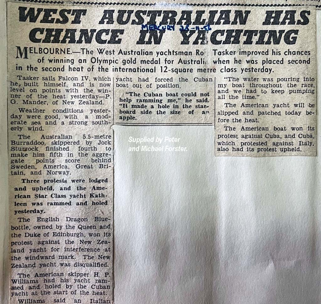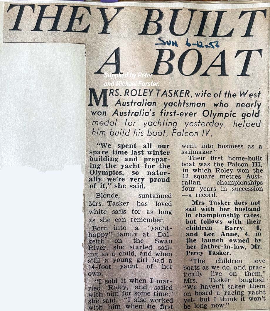 Peter had collected these newspaper articles and had them in his scrap books. (as at Sep 2023) He is 85 and he still sails regularly during the sailing season in Canberra in his Flying Fifteen.