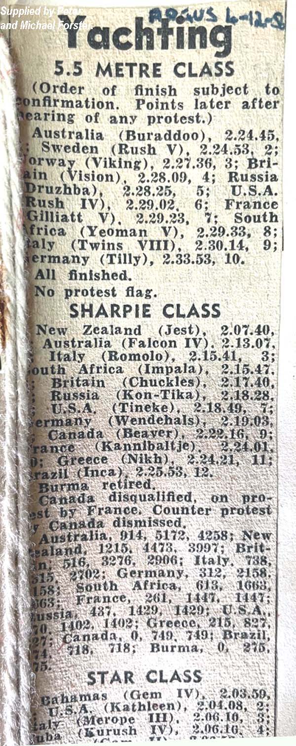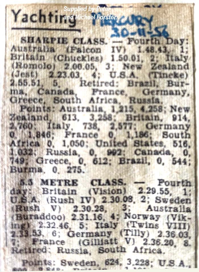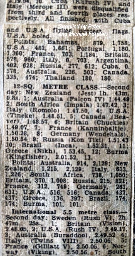 If Peter and Michael didn't think of sending a copy to me, then all this historical 1956 Olympics 12sq M info would be lost and none of us would enjoy reading it.