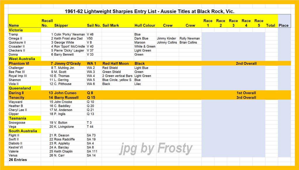 The Frost presence at these titles was Omega II V 50 - Jimmy Kinder, Rolly Newman and Keith Frost.
