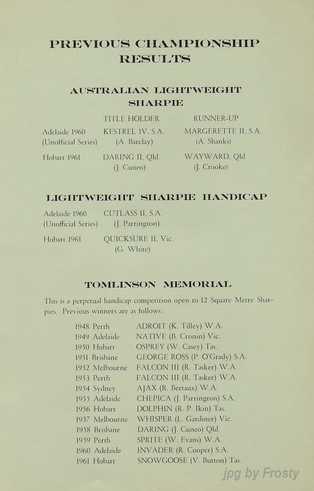 LWS-WA2-Challenger-T.Muhling Jnr or WA3-Bee Pee II-M.Scott, LWS-T3-Snowgoose-V.Button,