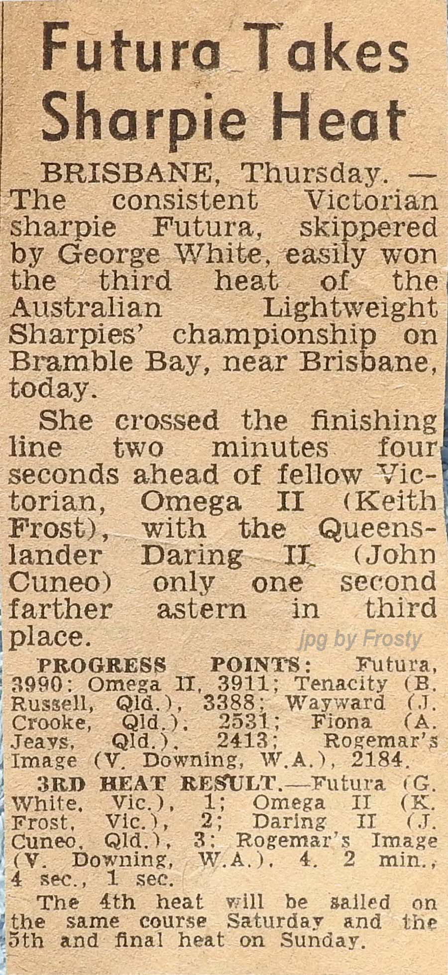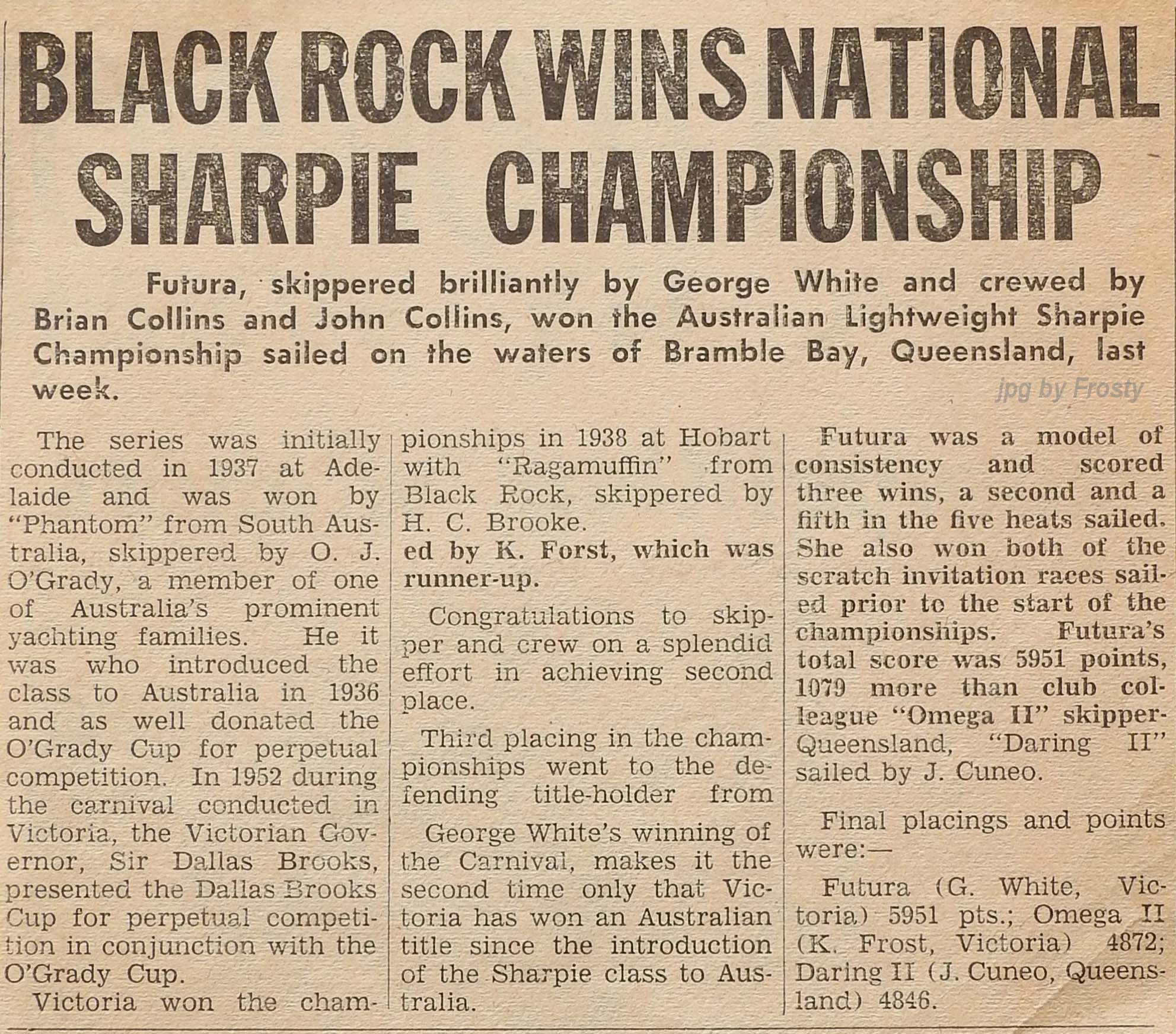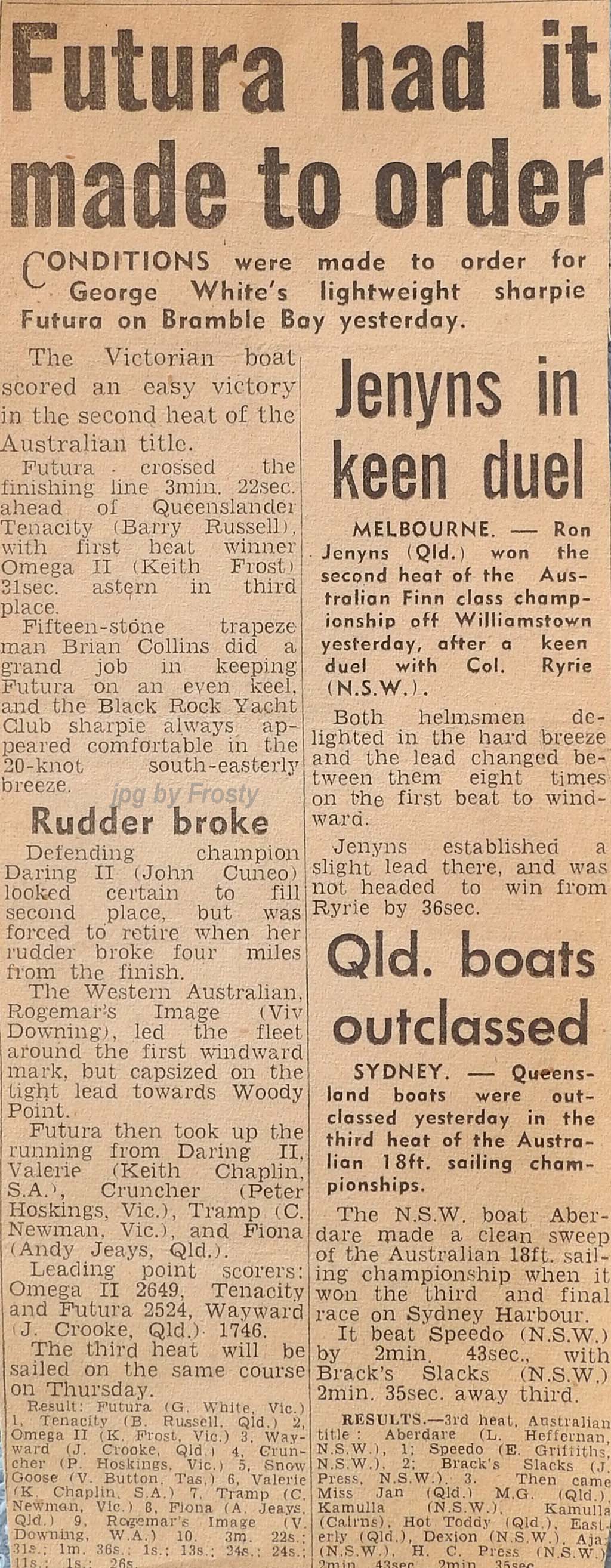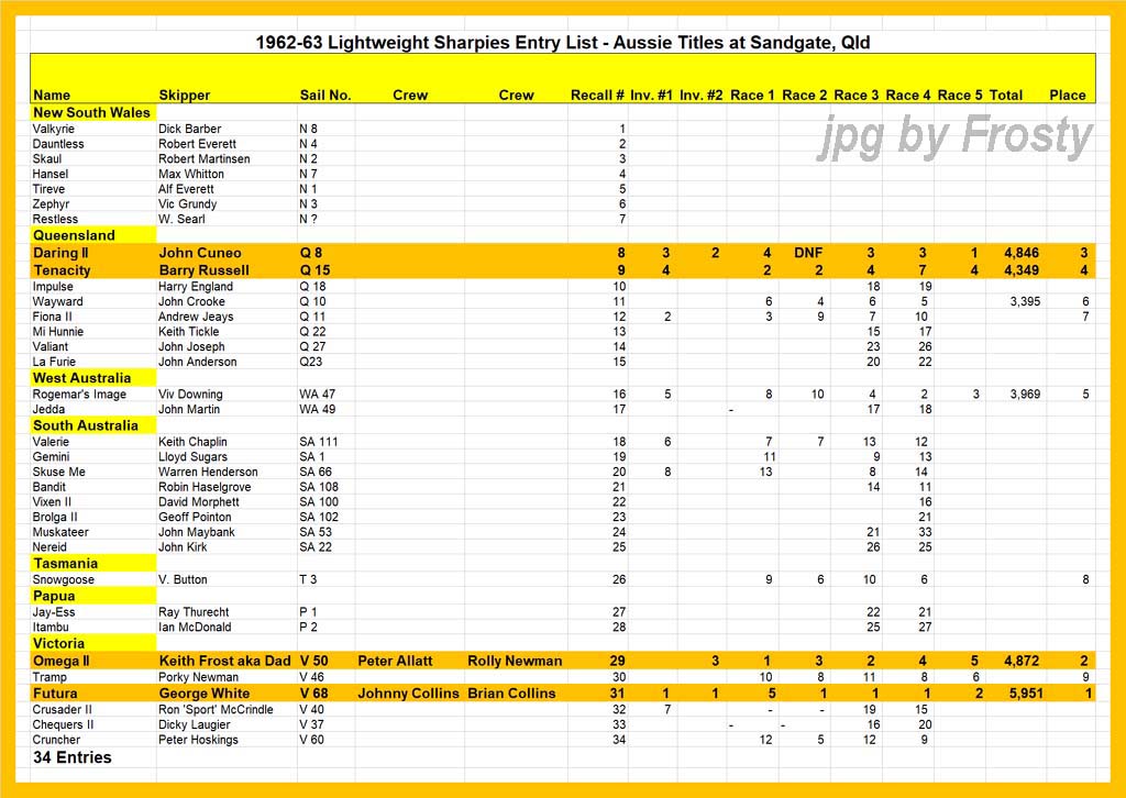 The Frost presence at these titles was Omega V 50 - Rolly Newman, Peter Allatt (brother of Ron) and Keith Frost.