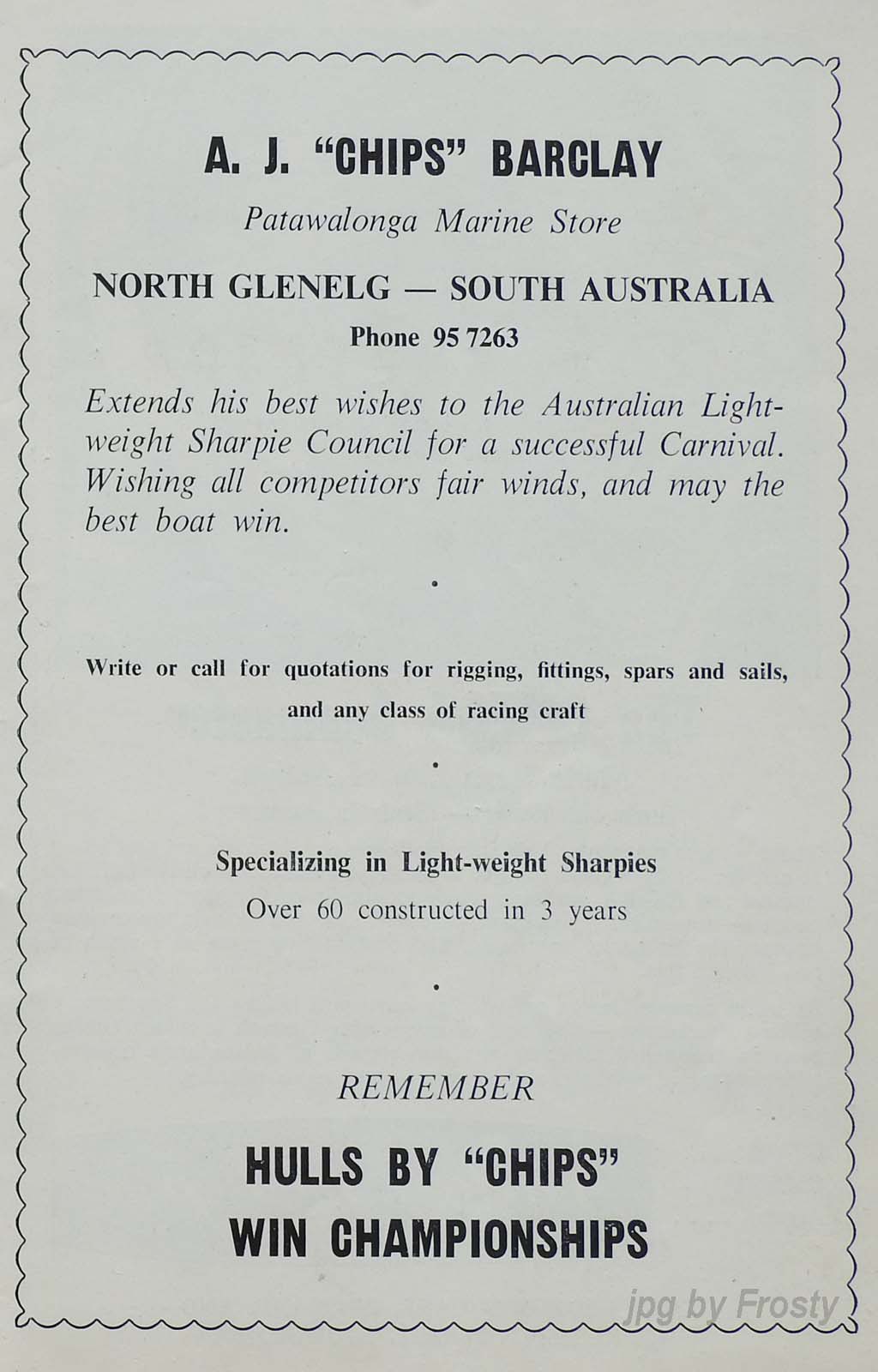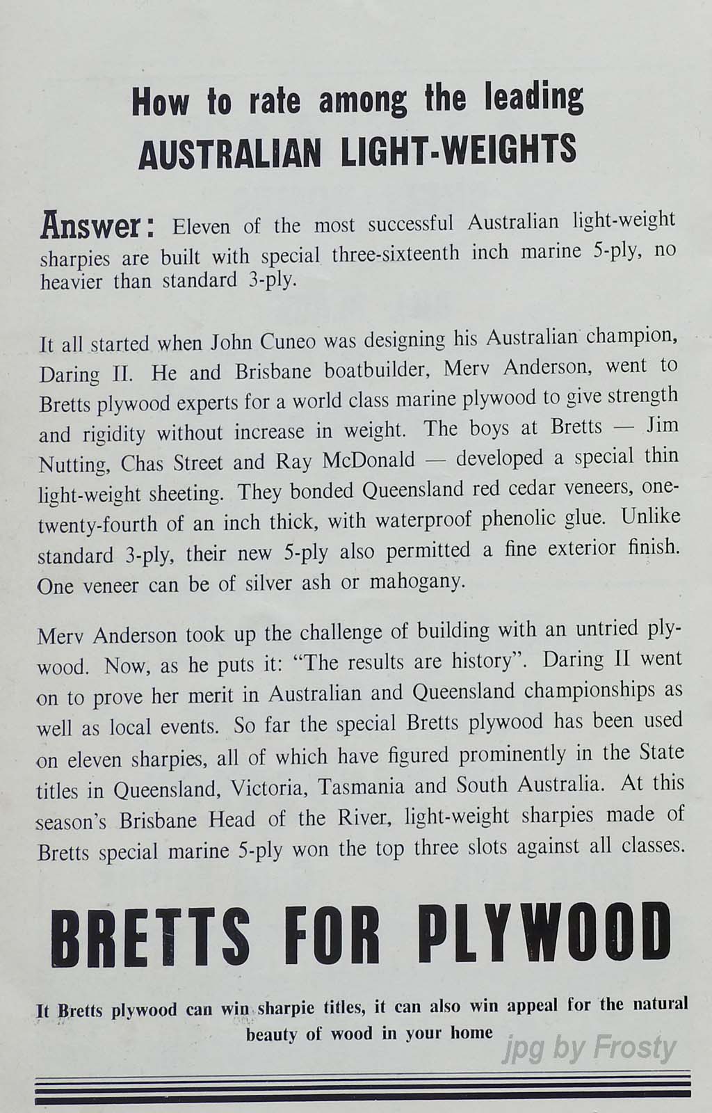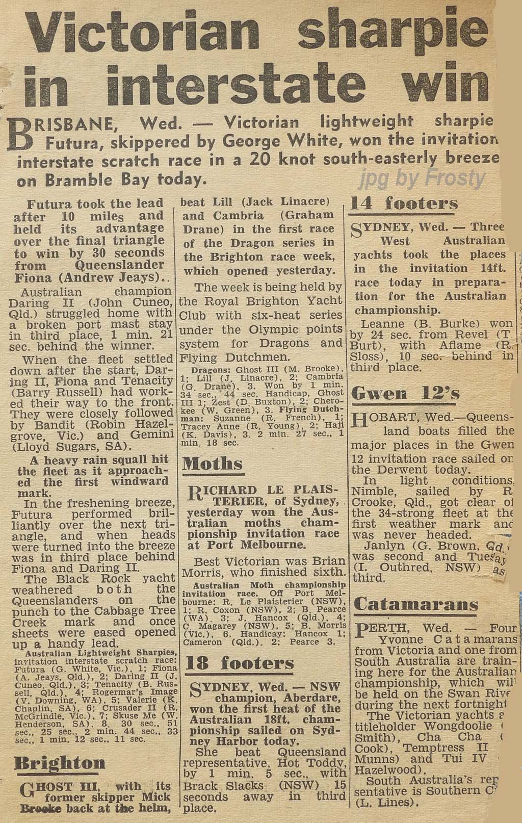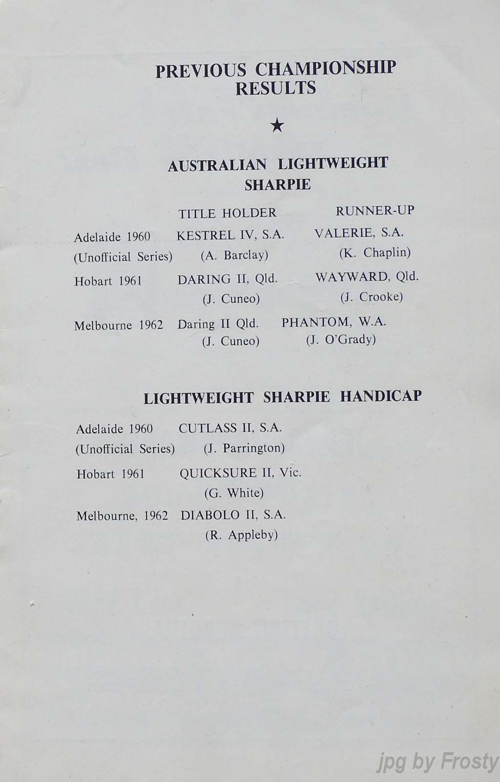 The Frost presence at these titles was Omega V 50 - Rolly Newman, Peter Allatt (brother of Ron) and Keith Frost.