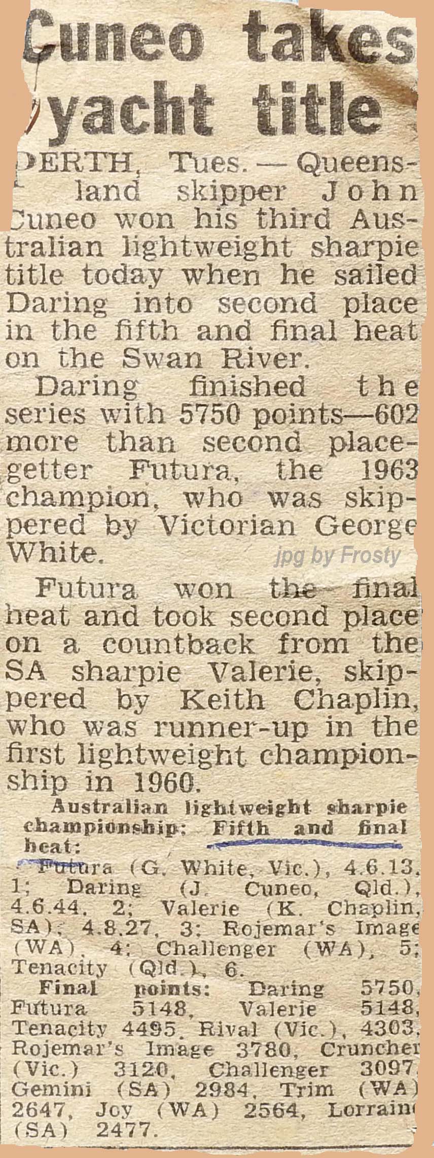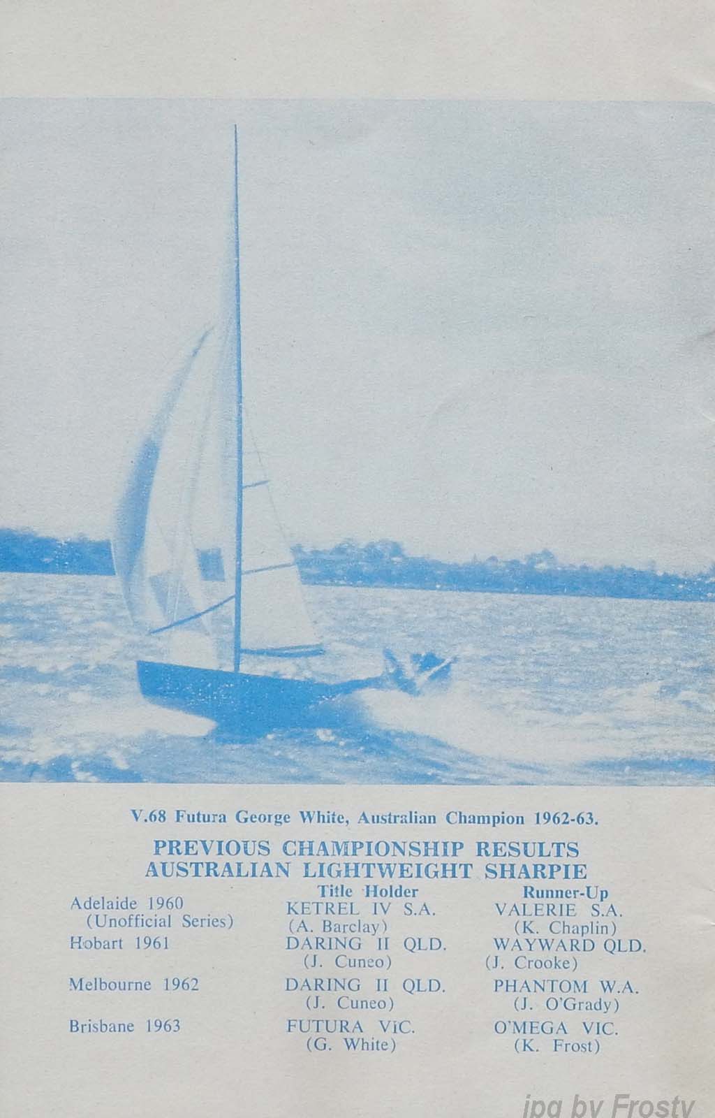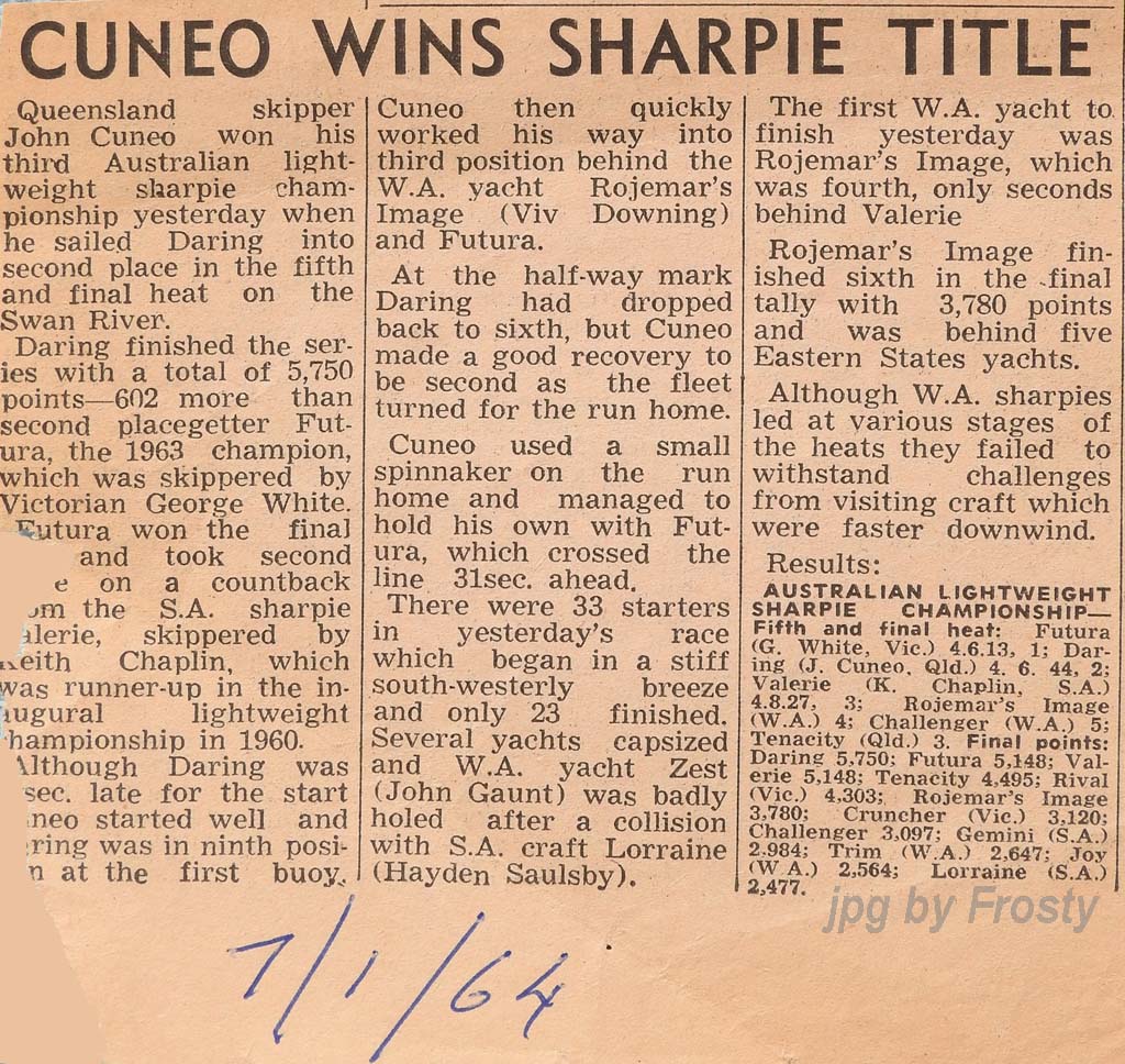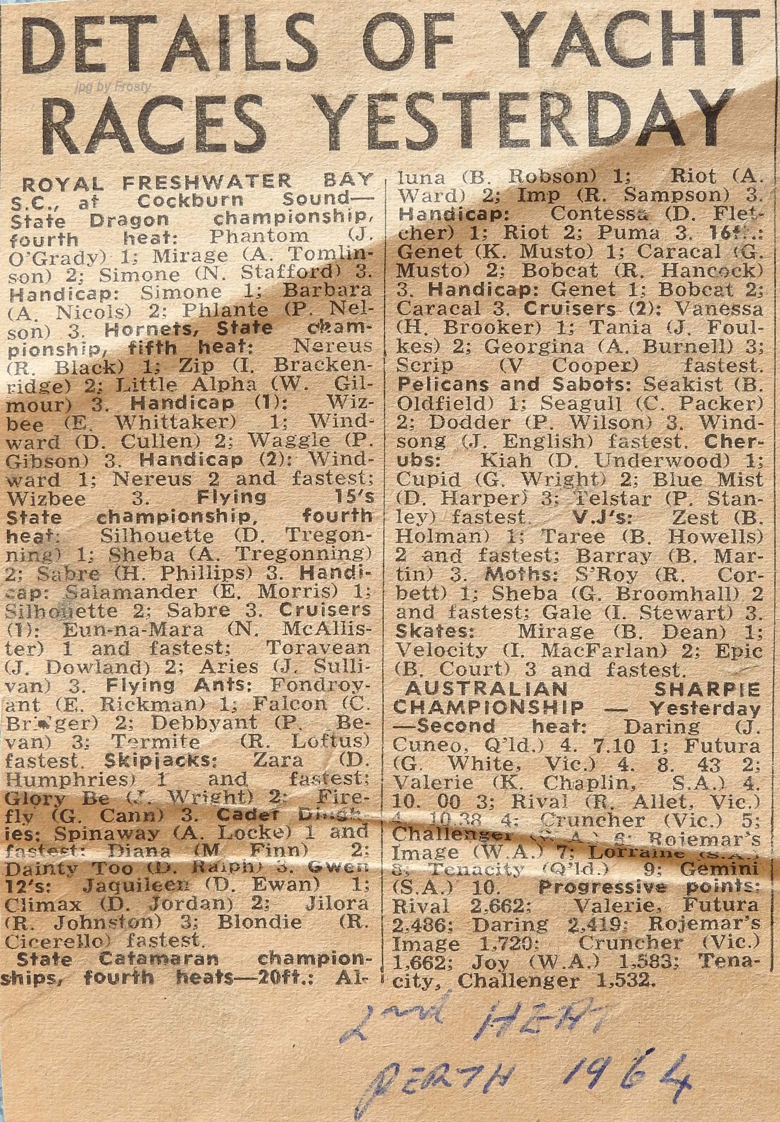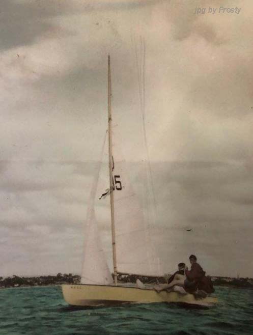Photo of our first Sharpie Nationals in Perth 1963-64 when I was forward hand for my elder brother Fred.