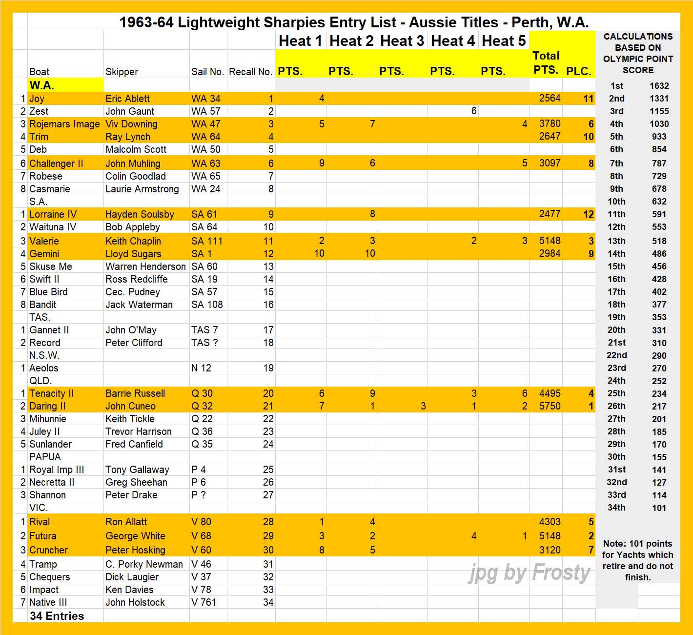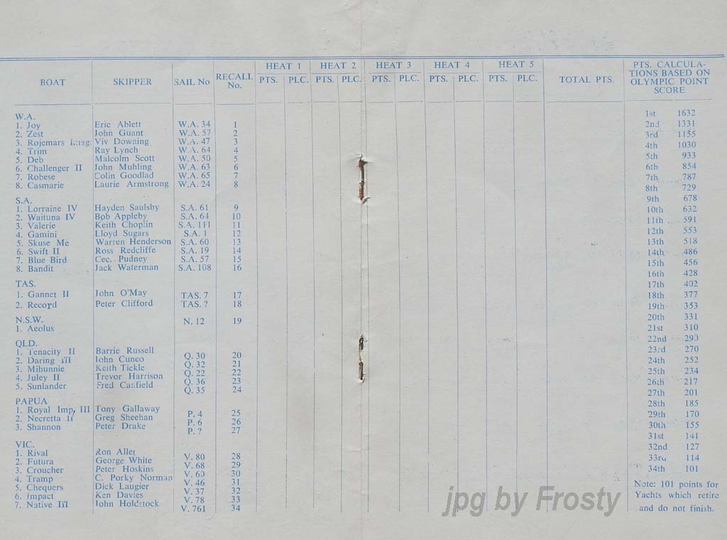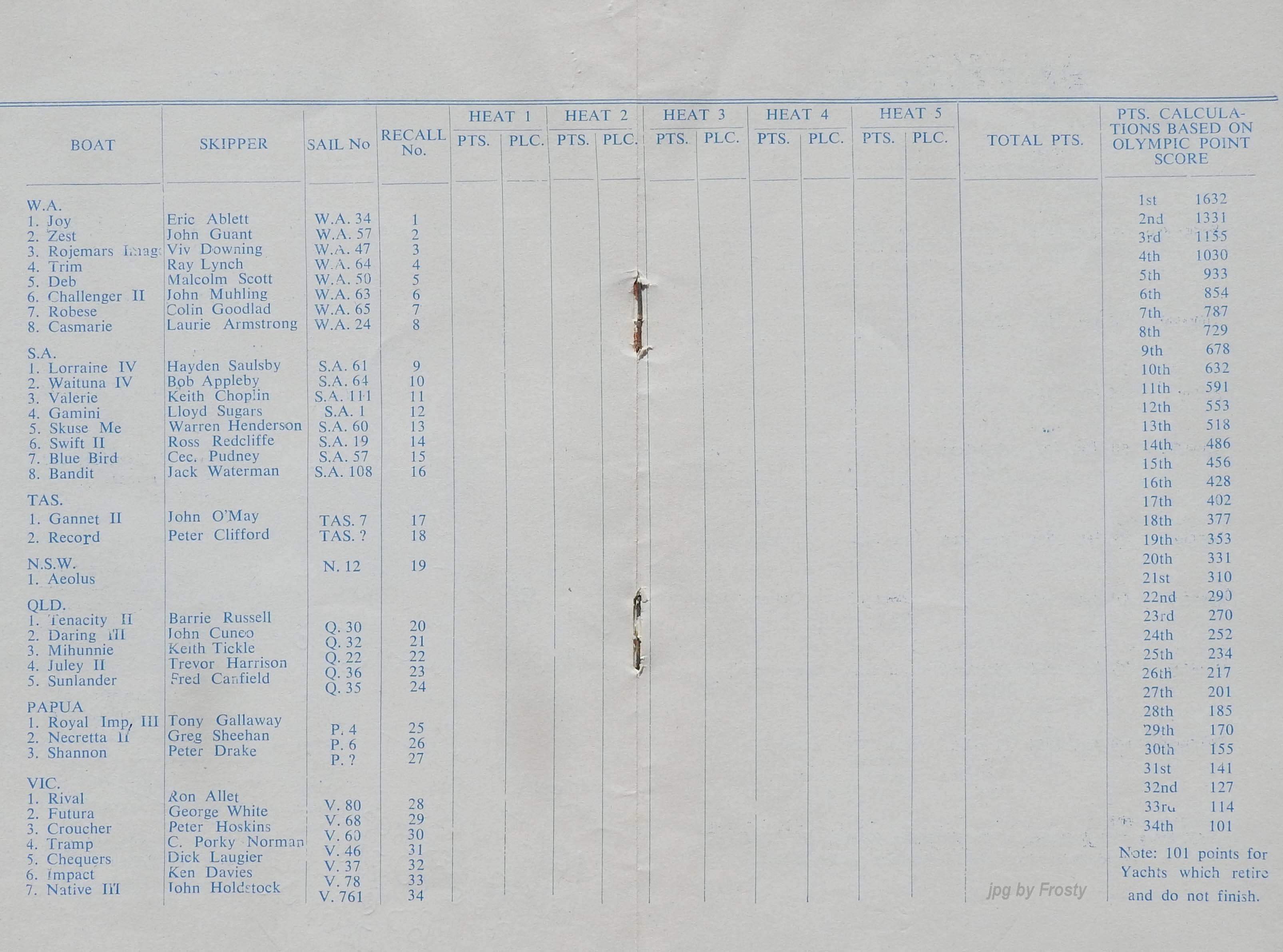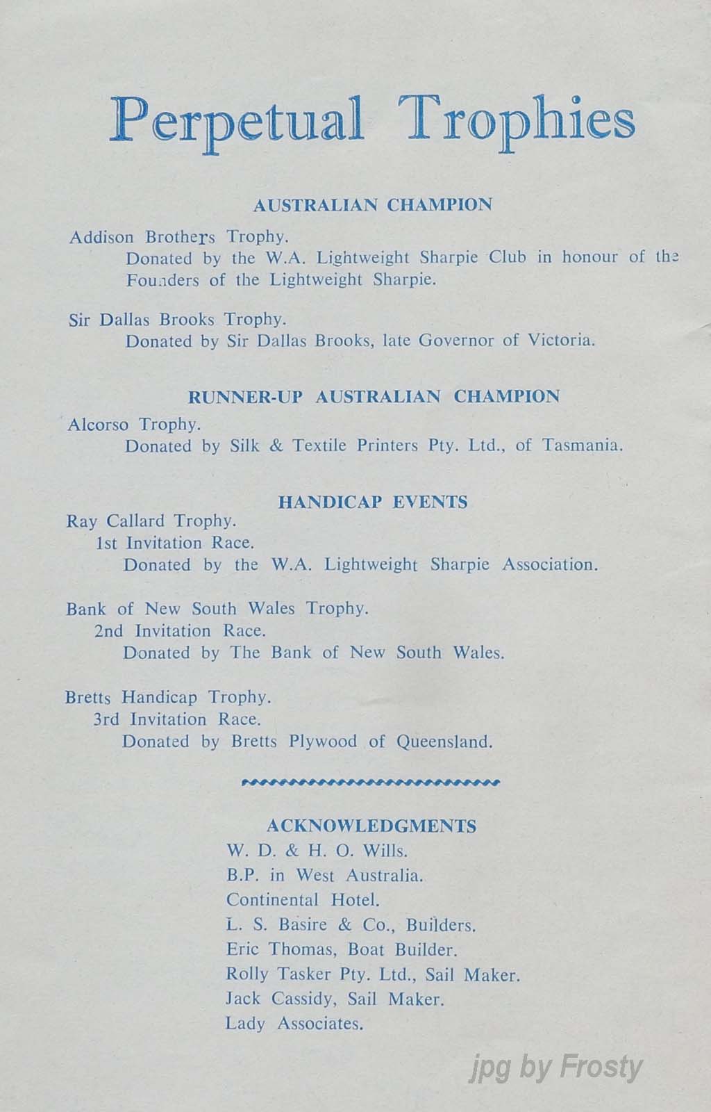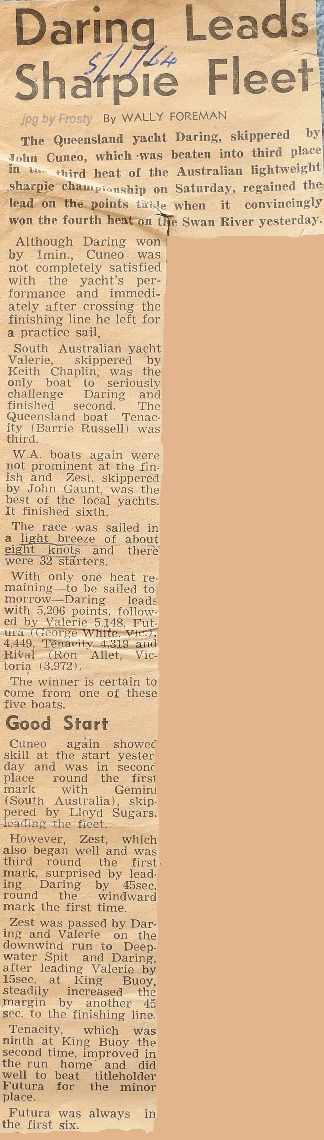 Photo of our first Sharpie Nationals in Perth 1963-64 when I was forward hand for my elder brother Fred.