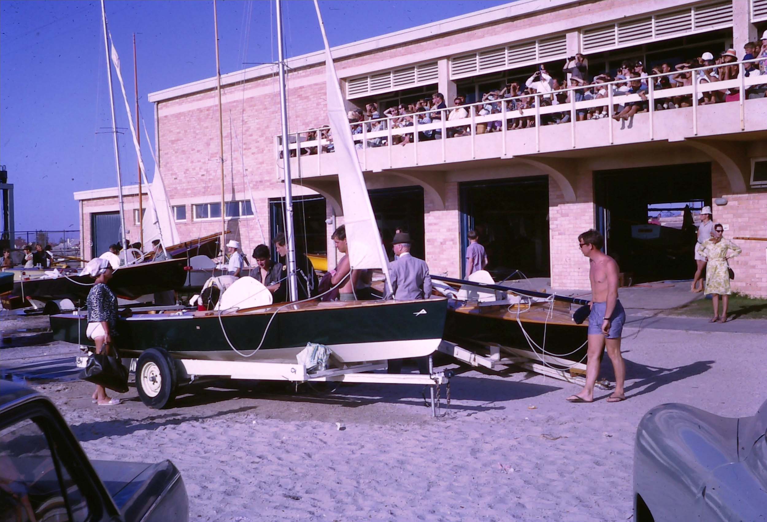 That is Geoff Augustine leaning on the boat behind the fashion trendsetters.