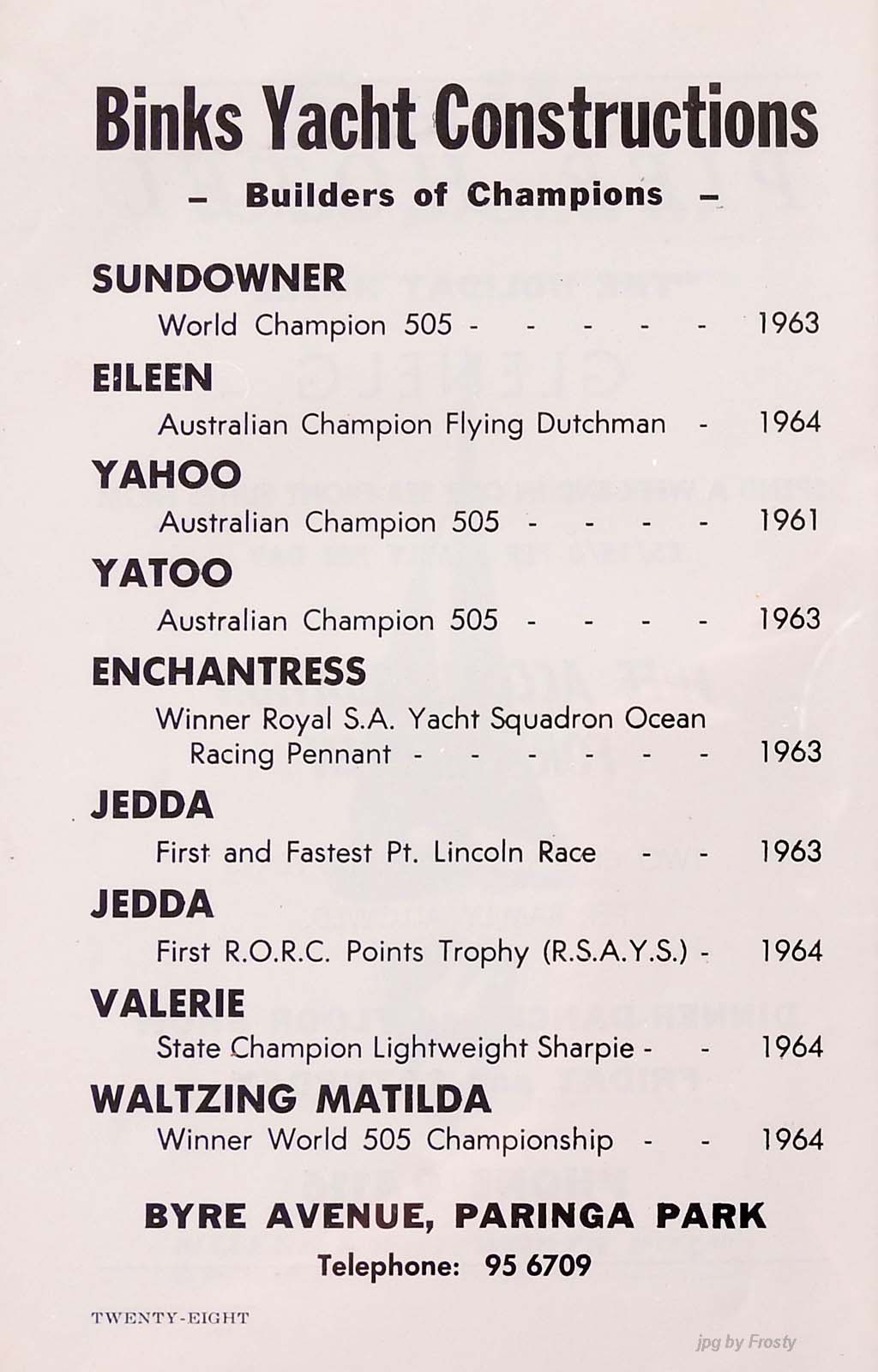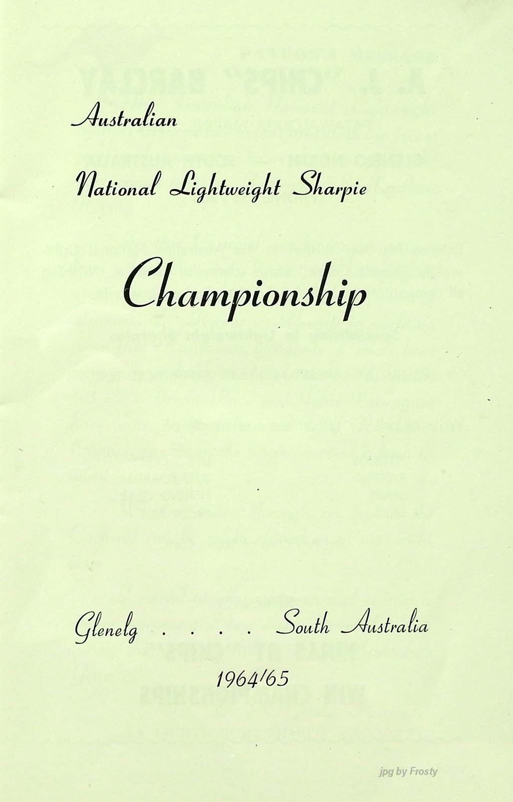 My memories of the 1964/65 Aussie Titles held at Glenelg Yacht Club.