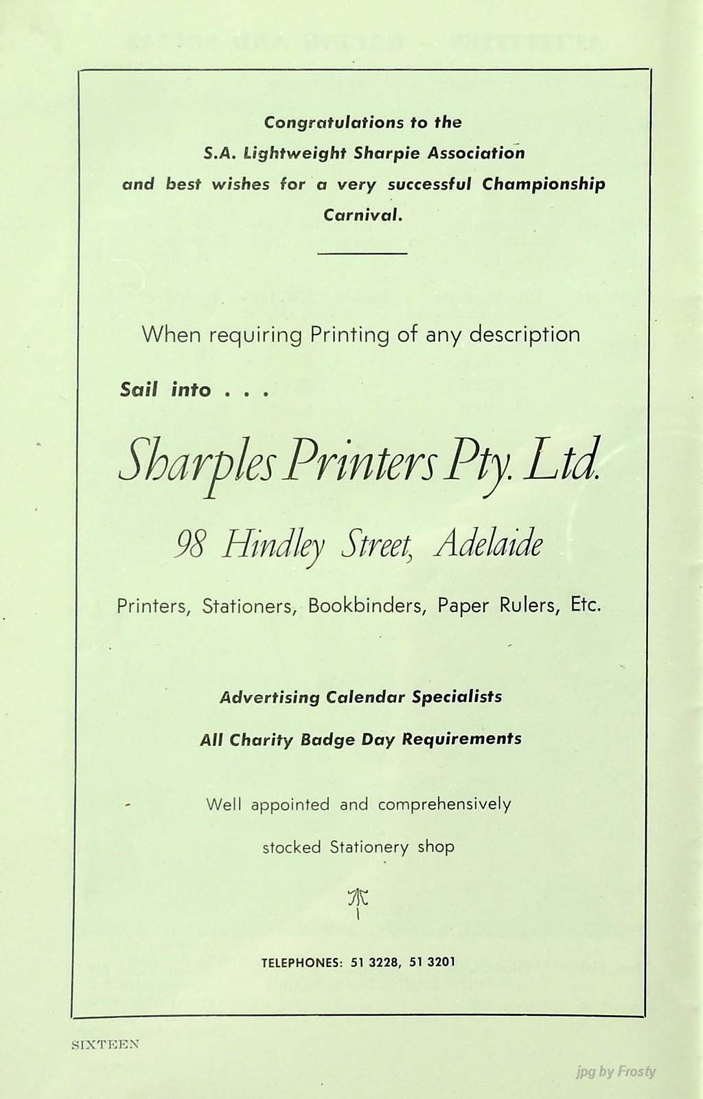 The info was supplied by Don Shields (Programme).