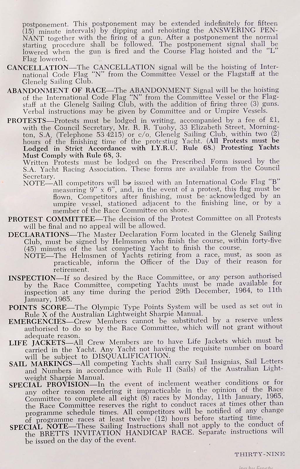 Host Club: Glenelg Sailing Club.