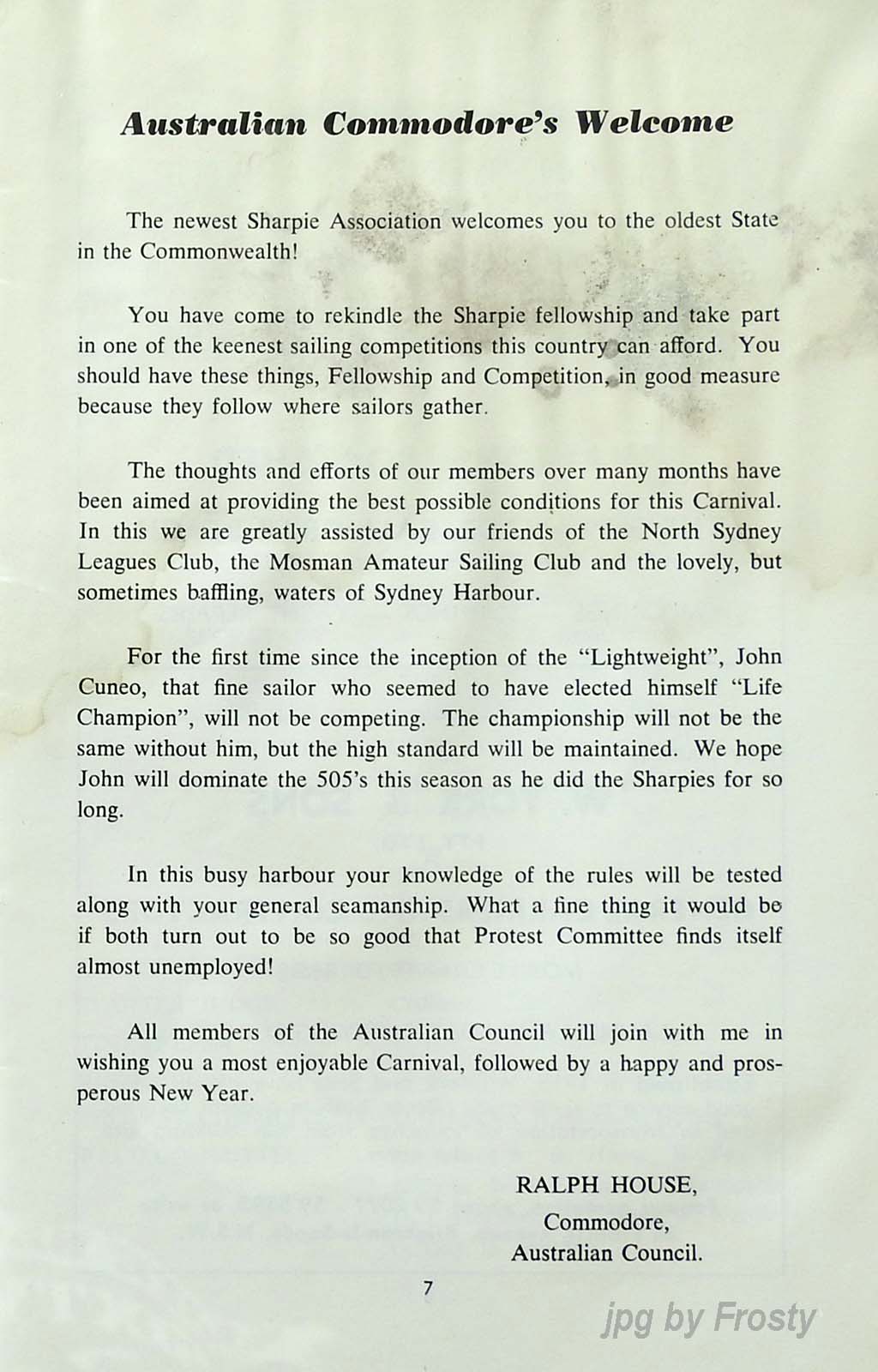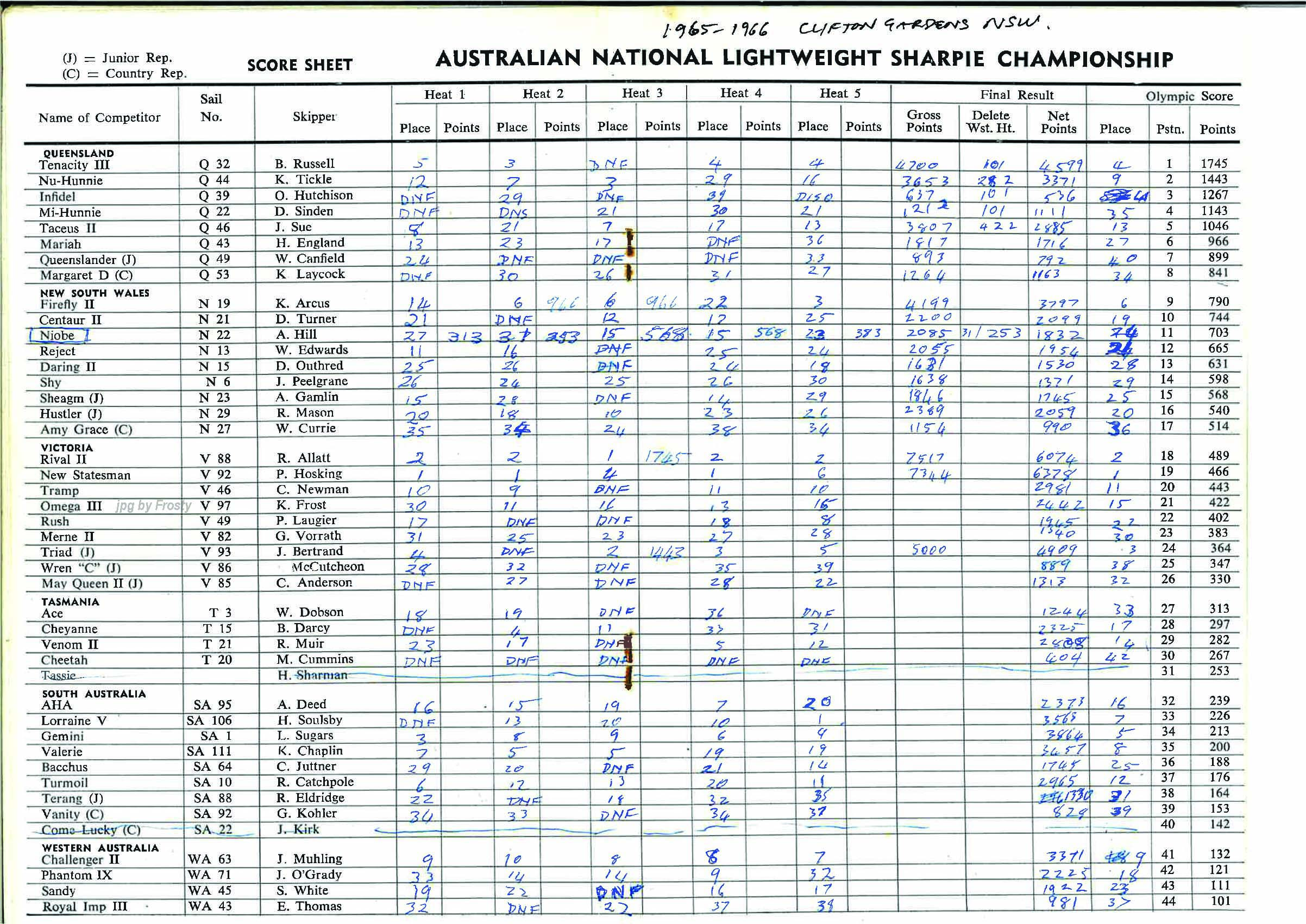 "Bit of ancient history! Clifton Gardens was my first Nationals, on board Niobe.