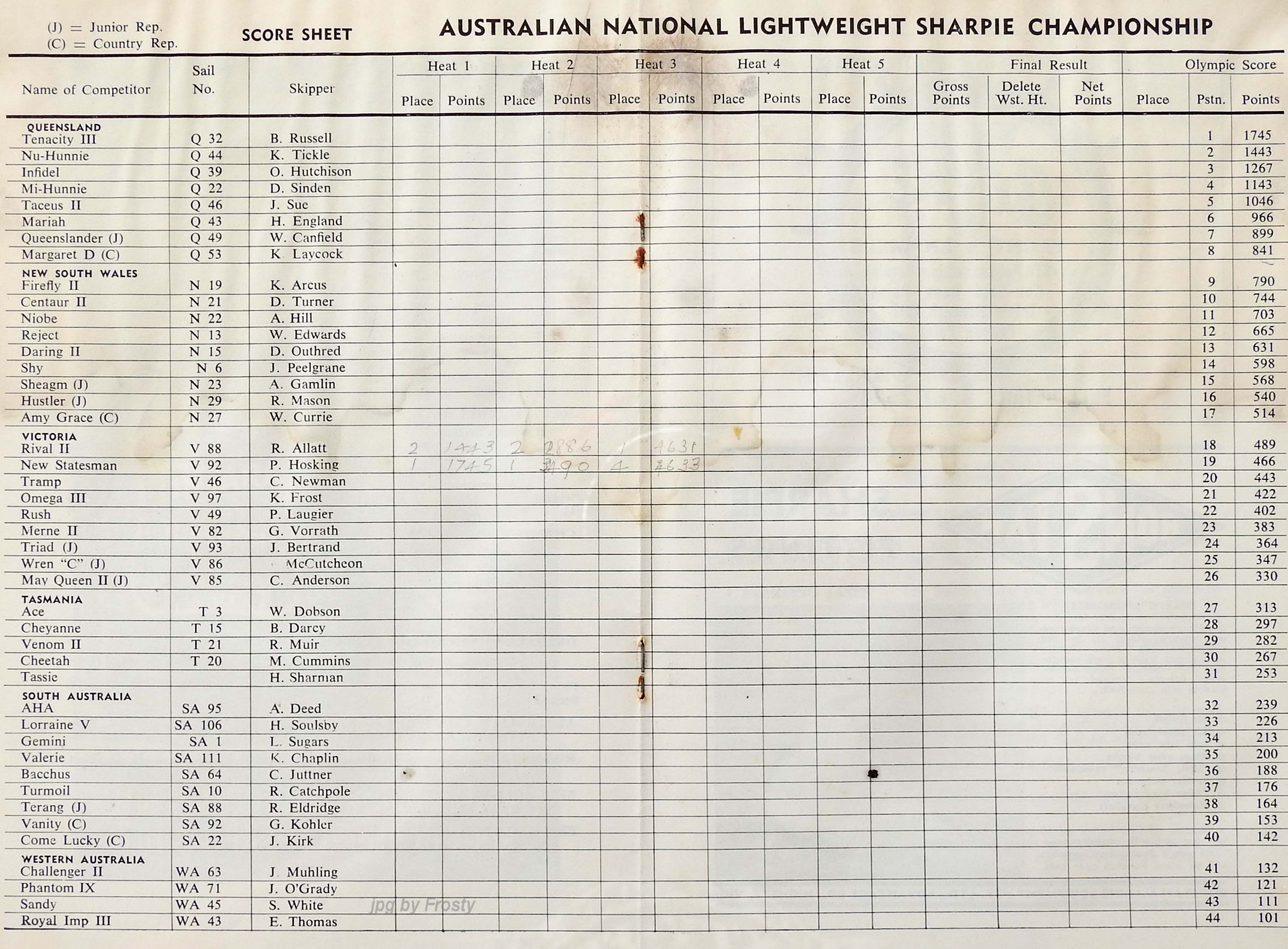 Update 16th Jan 2023: Rick Outhred supplied a copy of the FULL RESULTS. Bloody Amazing....