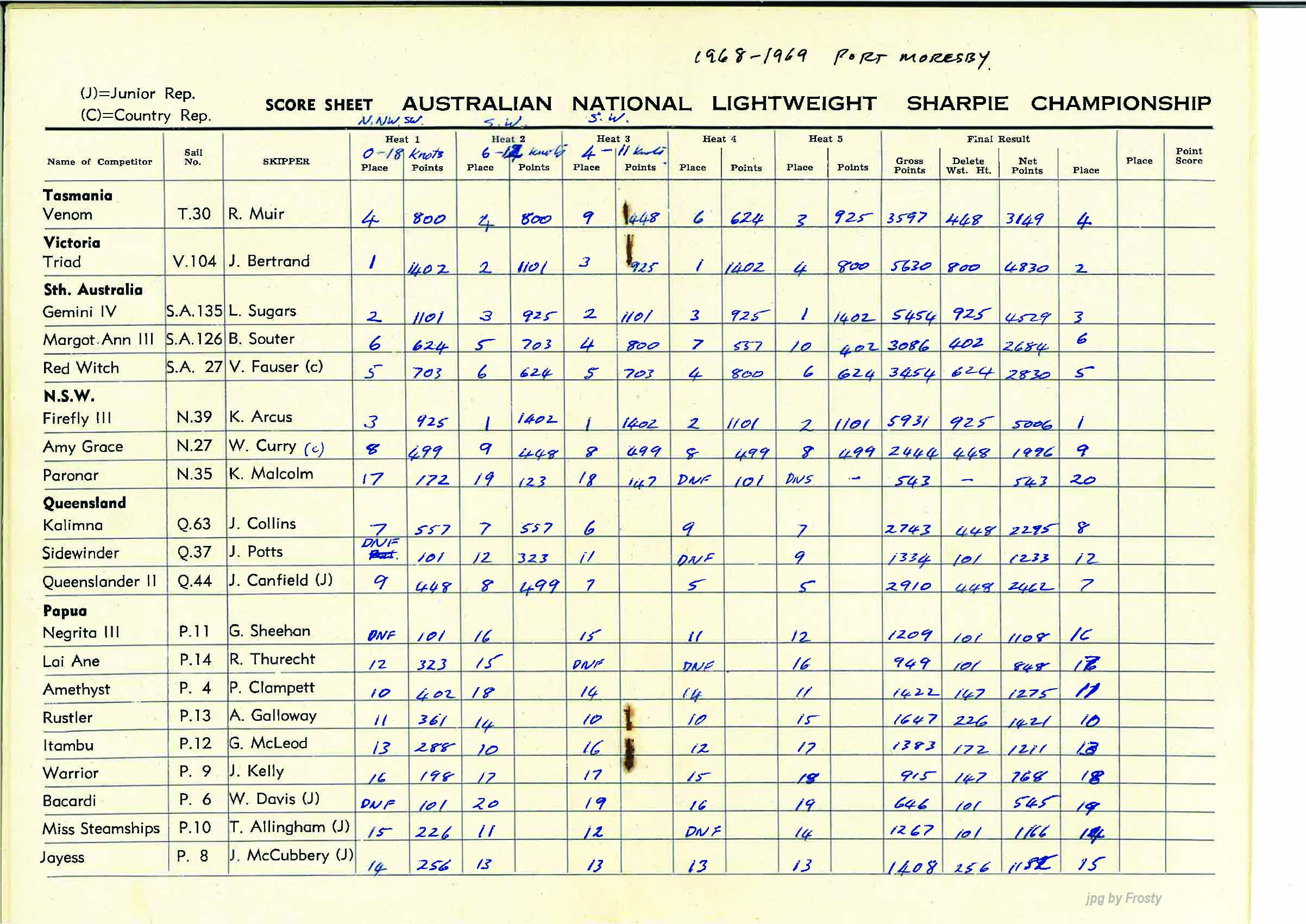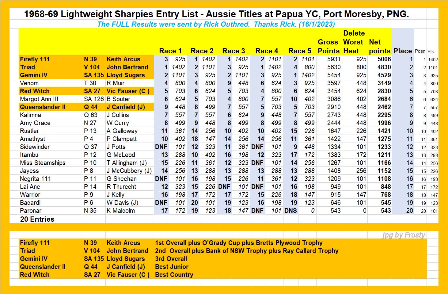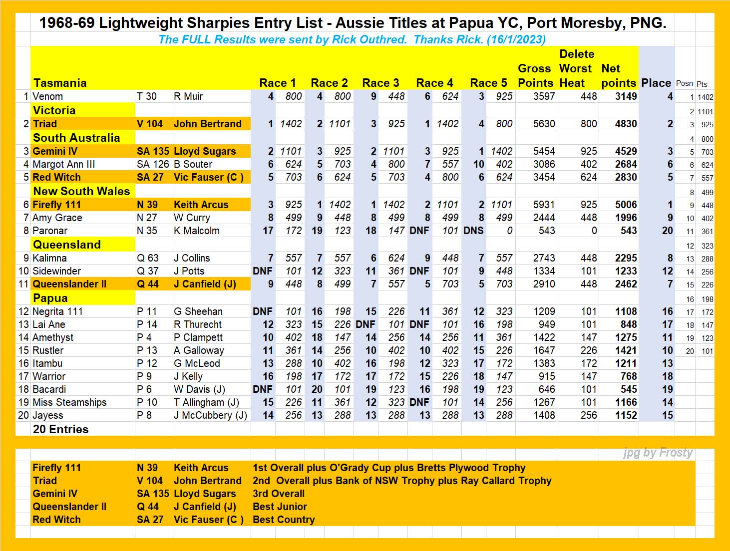 Update 16th Jan 2023: Rick Outhred supplied a copy of the FULL RESULTS.