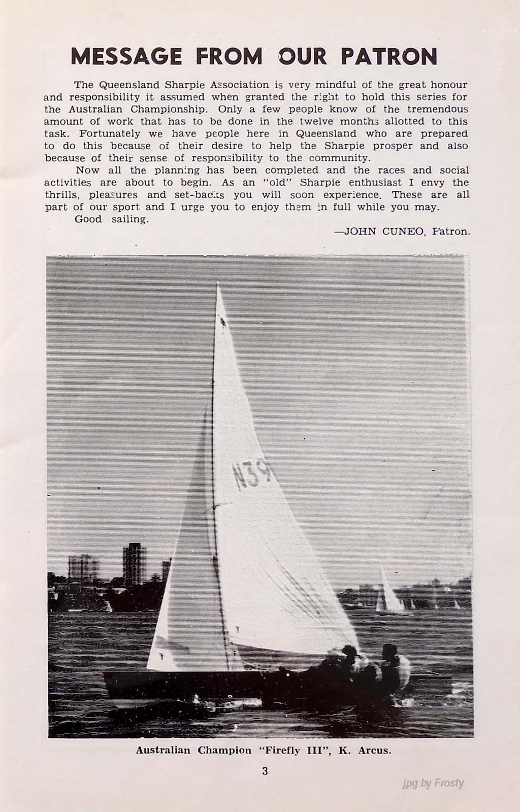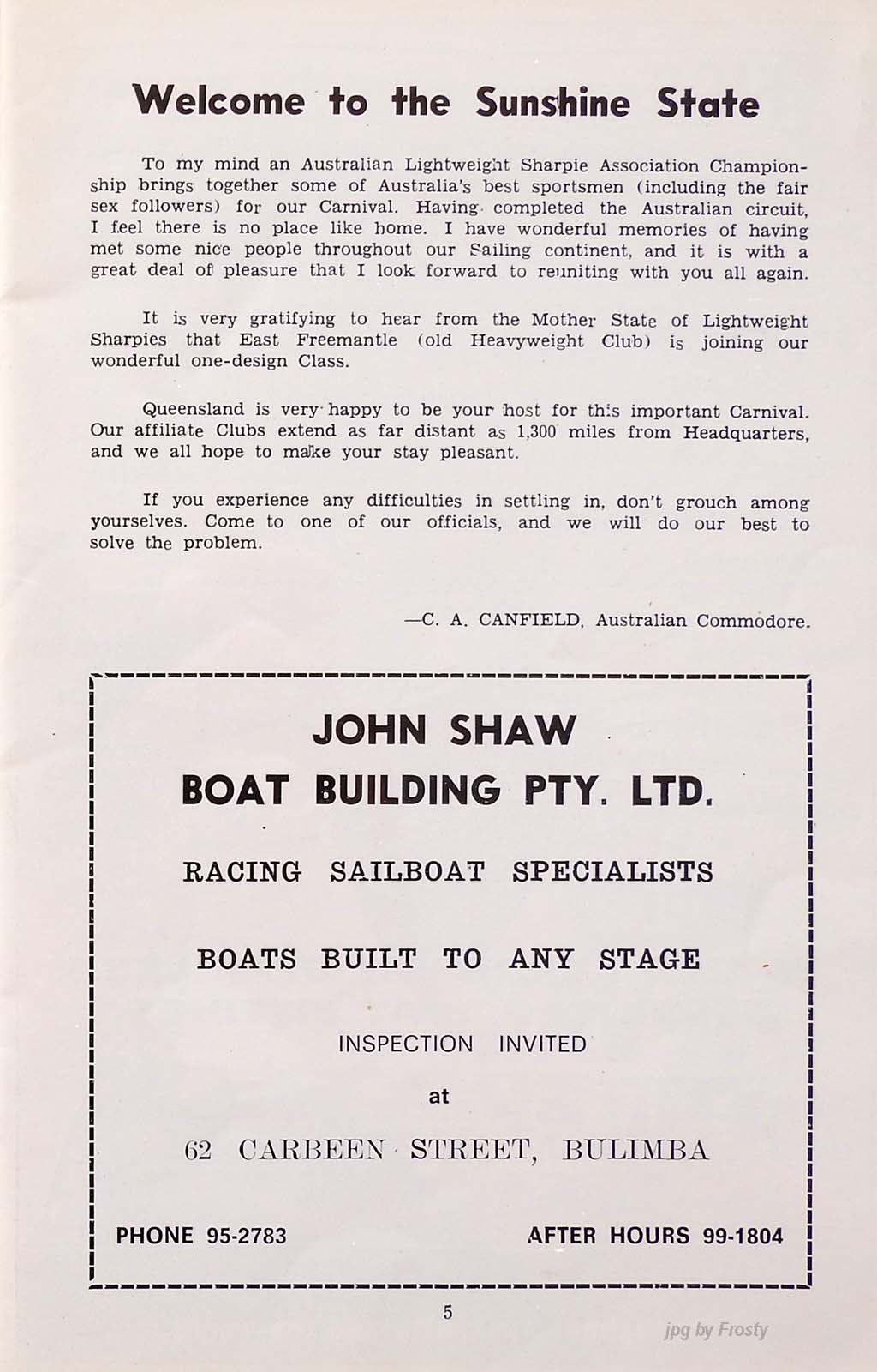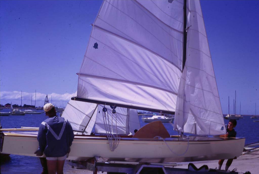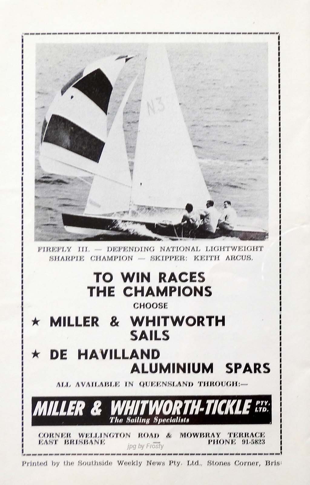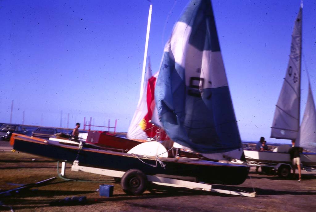 Mum, Dad, my sister Leeann and I towed Dad's Sharpie to Surfers Paradise, we were staying at the "Island in the Sun" on the Esplanade. I drove the majority of the way with a BIG"L" plate connected to the back of the yacht. The yacht suffered a little damage due to a design fault with the trailer, not my driving, so we delivered it to Merv Anderson a very famous Sharpie builder of that era in Sandgate, Brisbane.