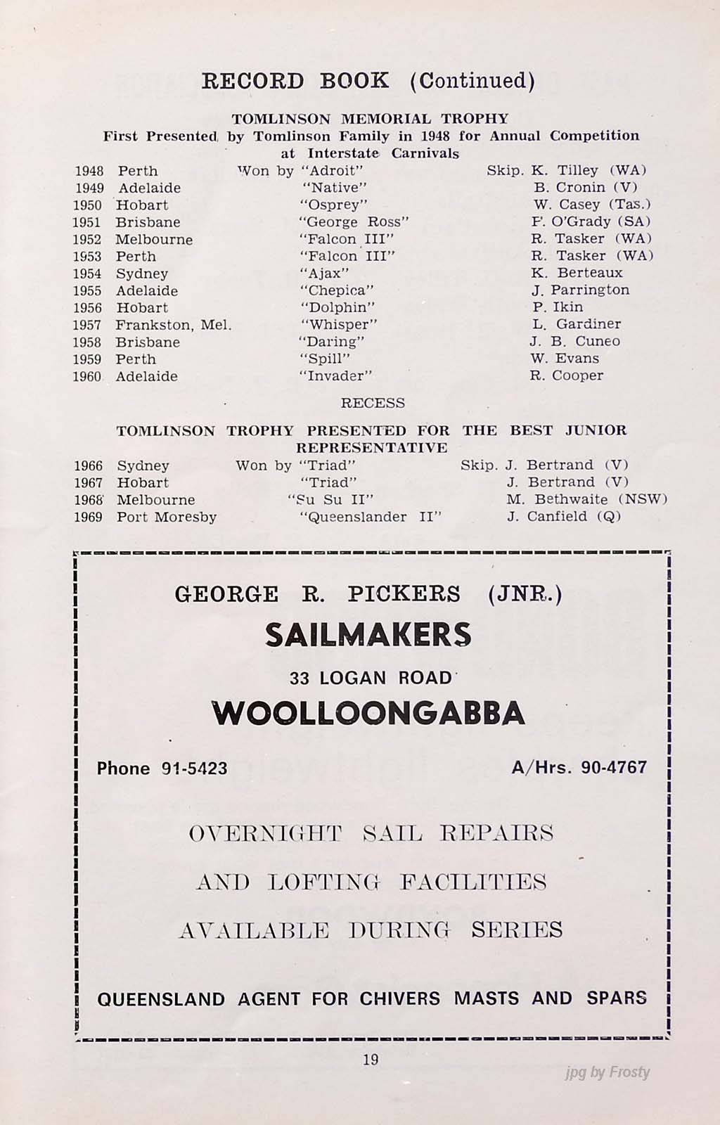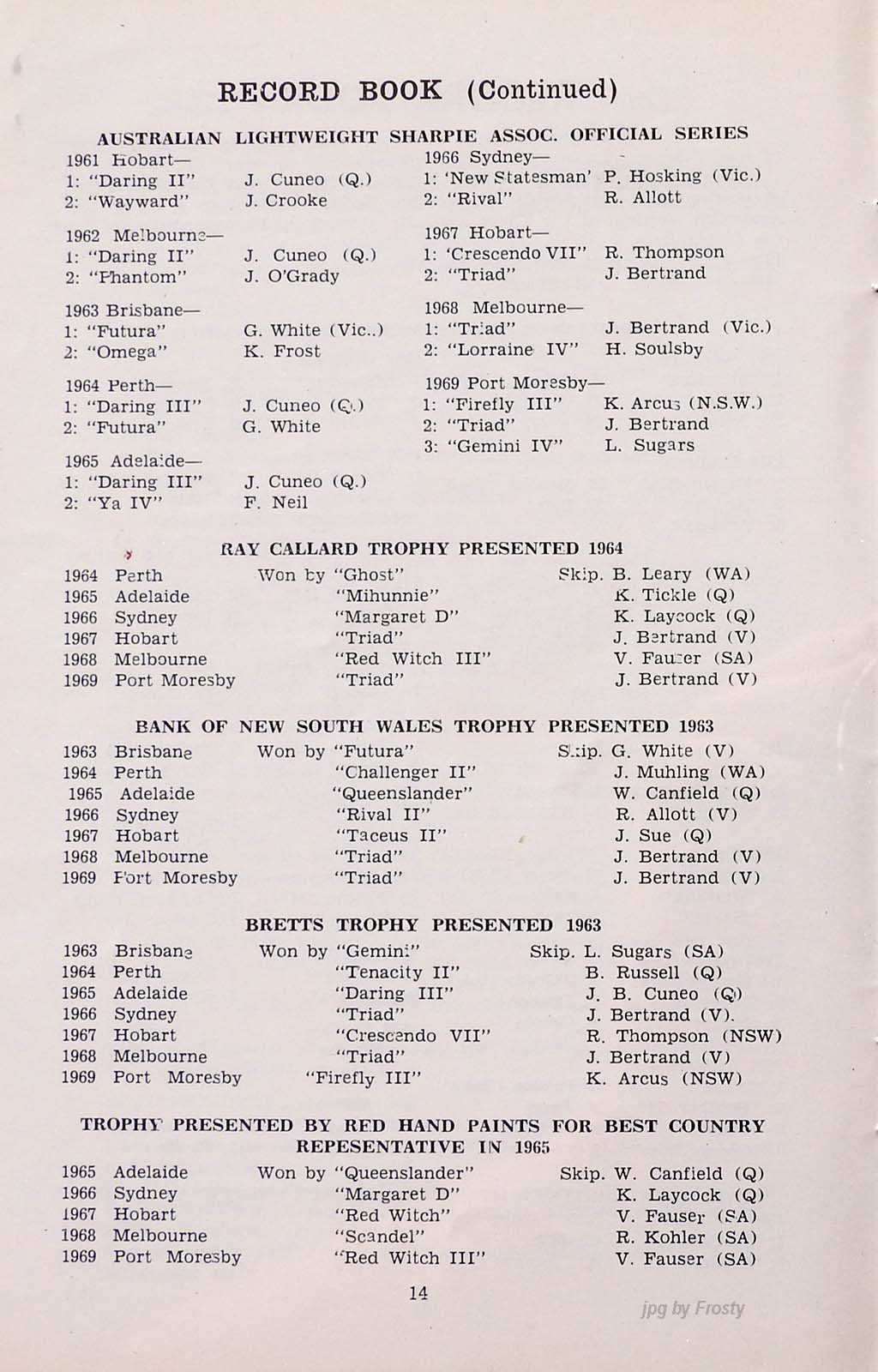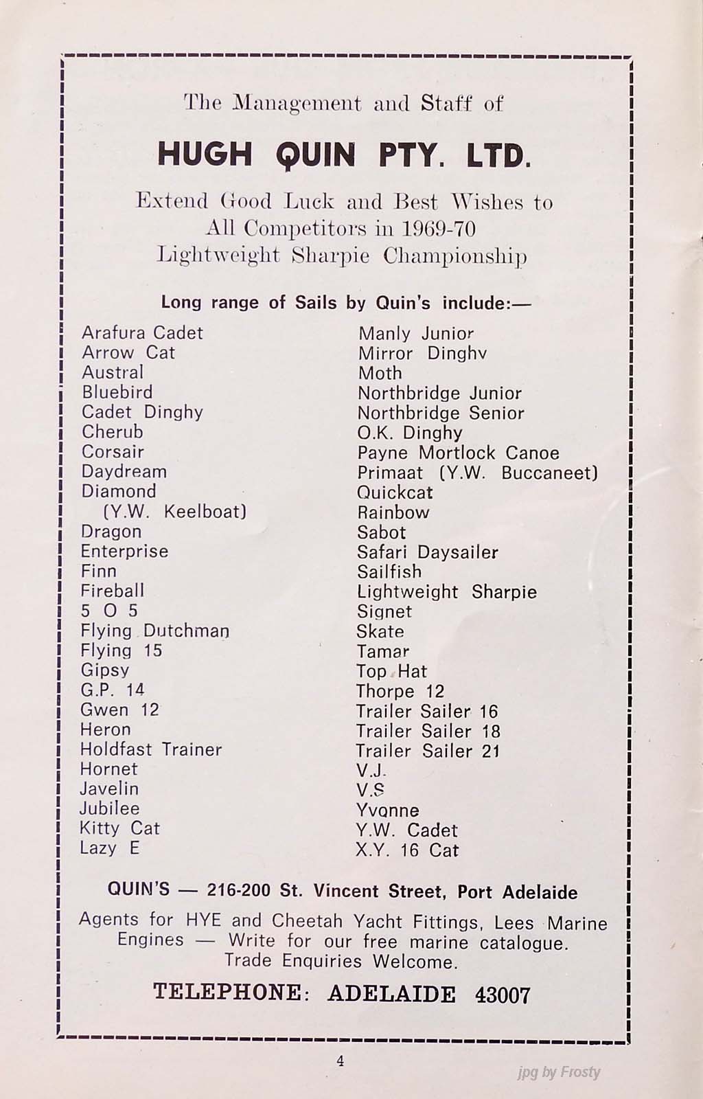 The pub was booked out with Sharpie sailors so it was a great atmosphere, I remember Fred Murdoch from WA stayed there. Mum and Dad and Leeann stayed at a motel nearby. I think Willo and Rolly and some other interstate Sharpie sailors stayed there as well. I remember one of the SA sailor drove a brand new 1969 Pontiac Parisienne. I am sure it was Vic Fauser sailing Red Witch II from Port Pirie. I can't remember his name, but Vic's mainhand was a great kid like us and he joined us in many of our activities.