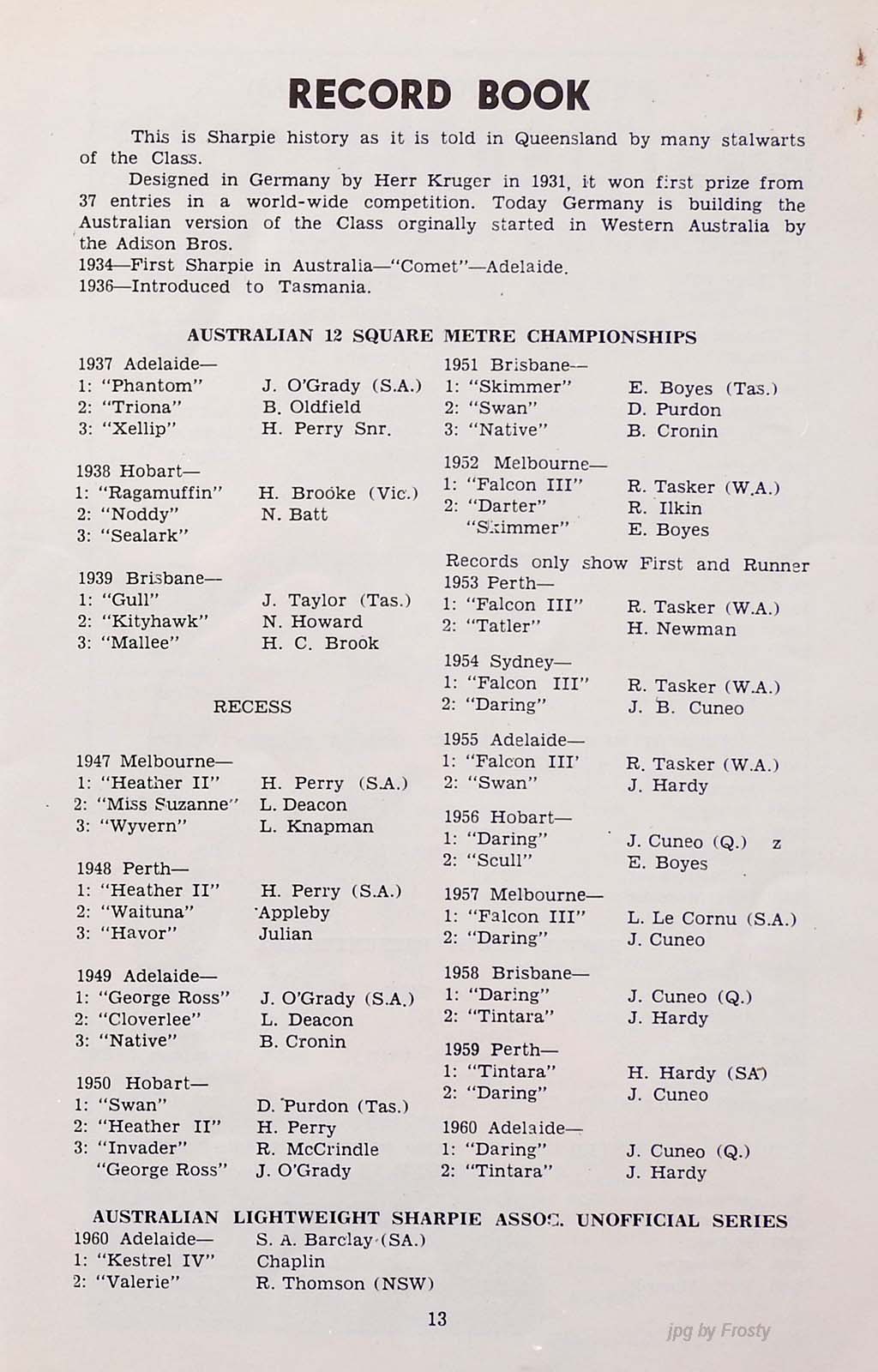 The Sharpie Aussie Titles were usually held between Boxing Day and about the 9th of January.