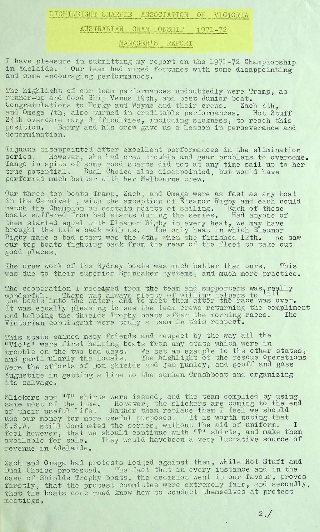 Below is the Team Managers' reports on the 1971/72 Aussie Titles for the Victorian team.