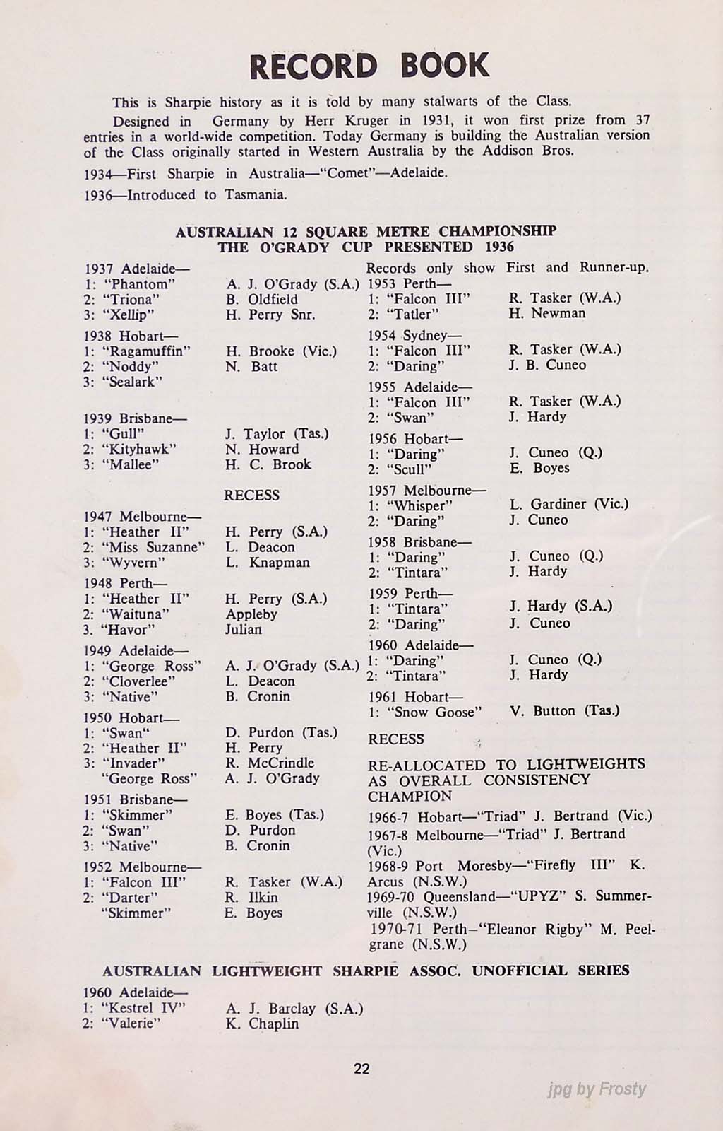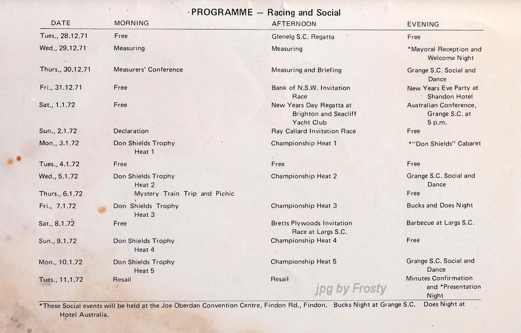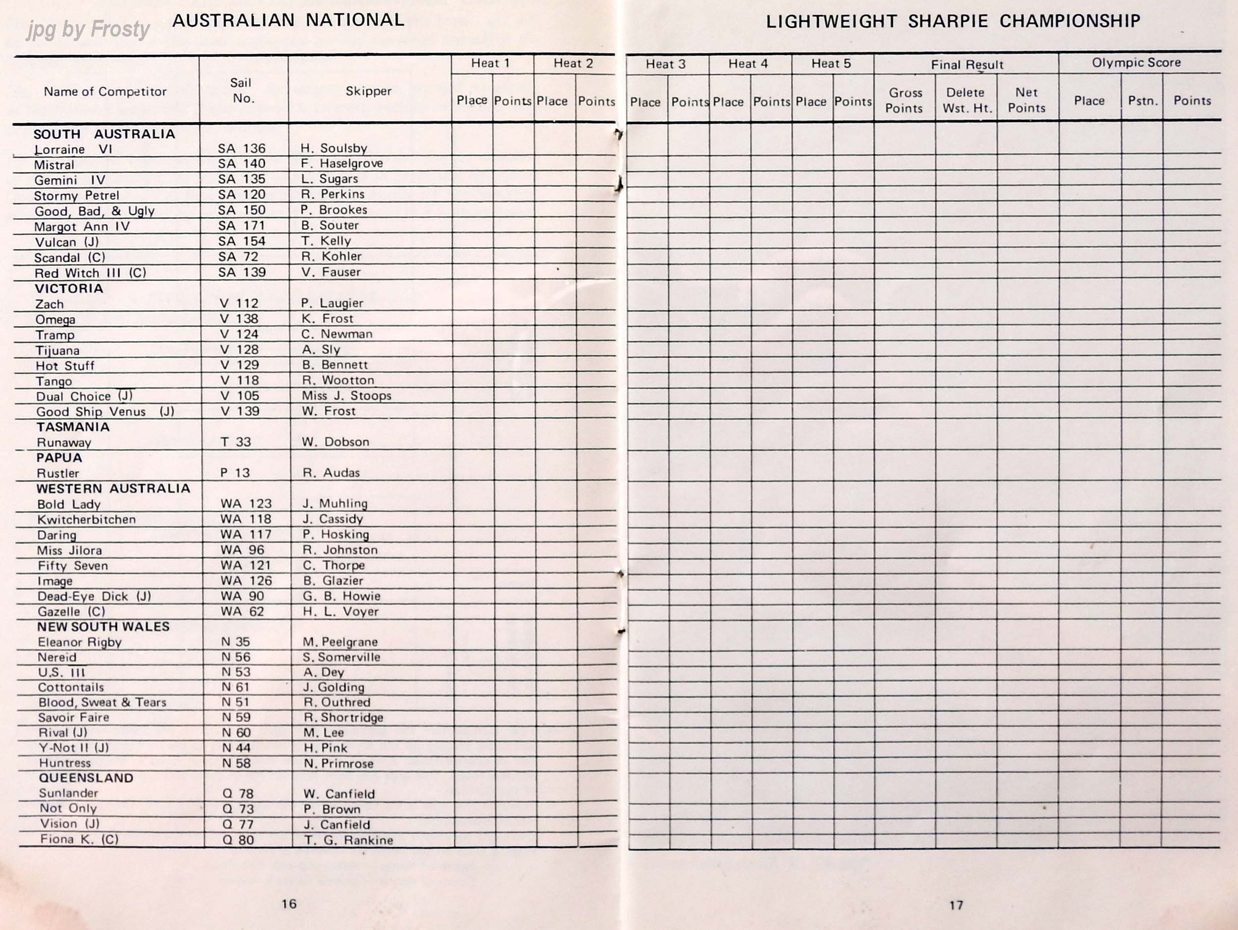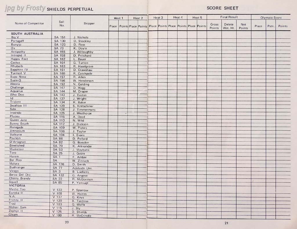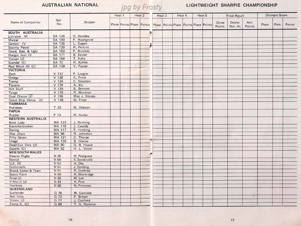 The results were taken from the Victorian Sharpie Association Newsletter dated February 1972