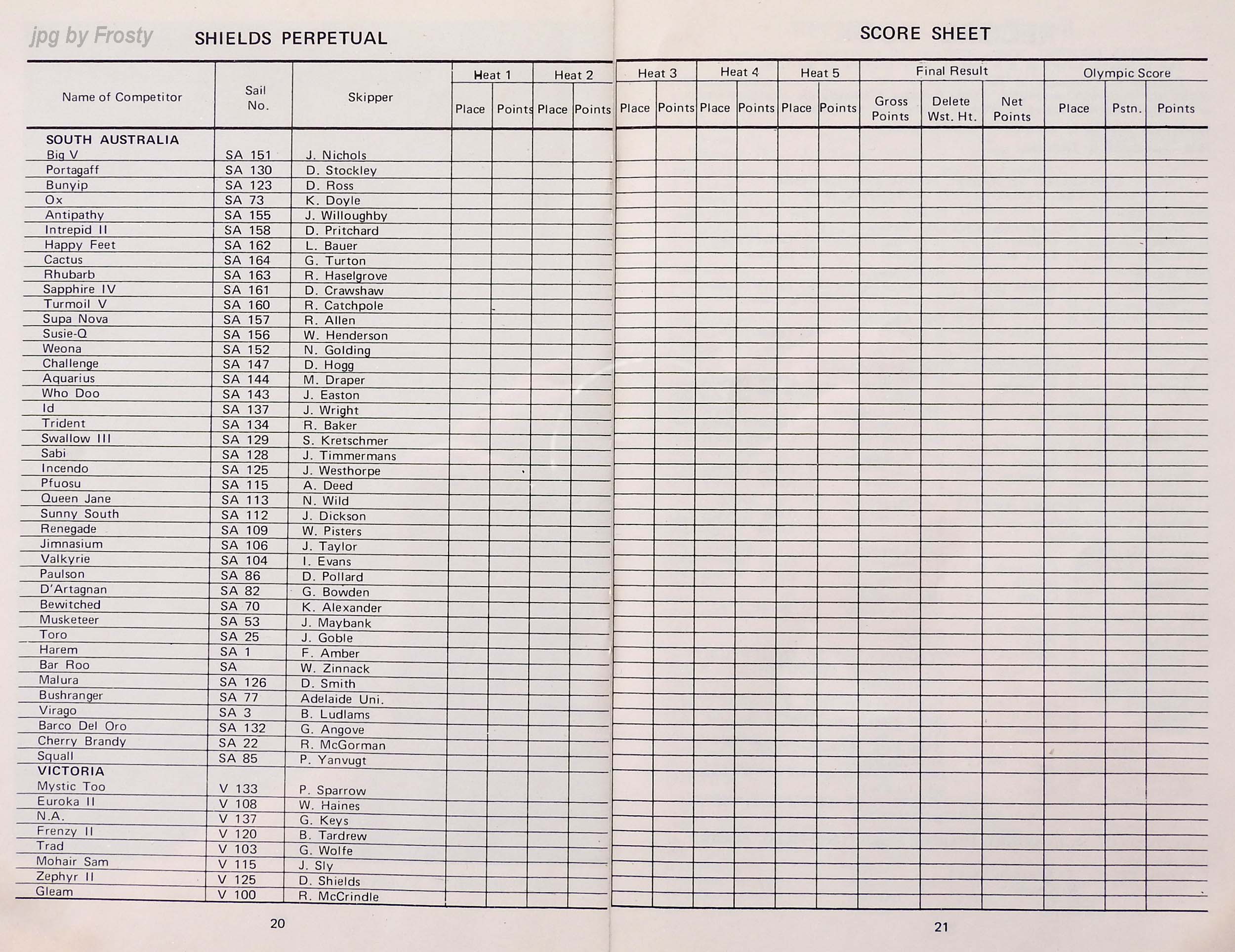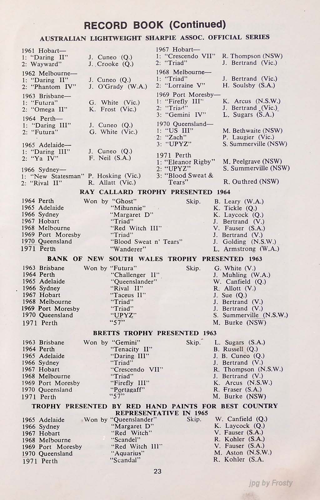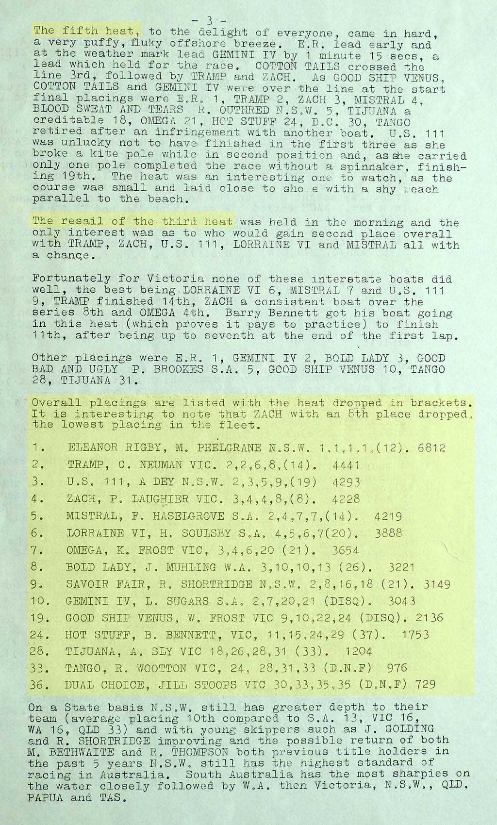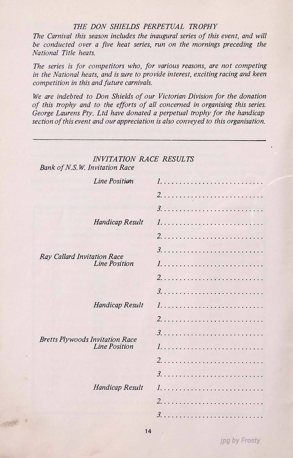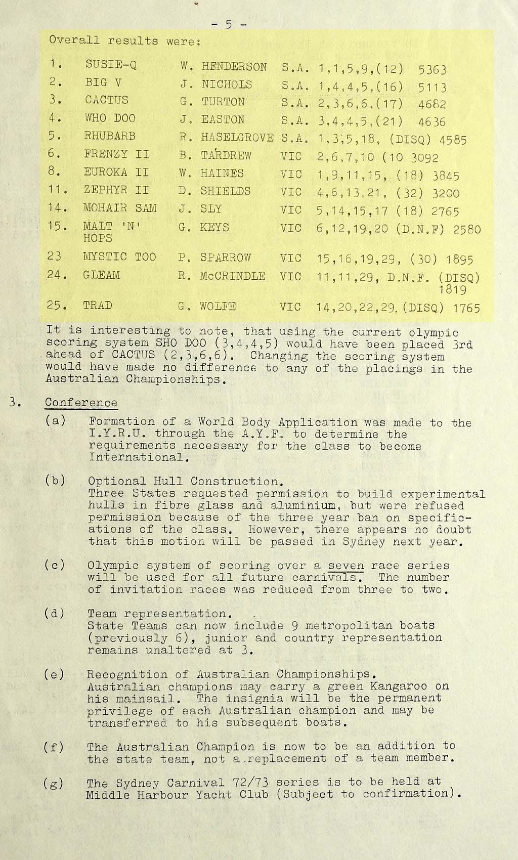 The results were taken from the Victorian Sharpie Association Newsletter dated February 1972