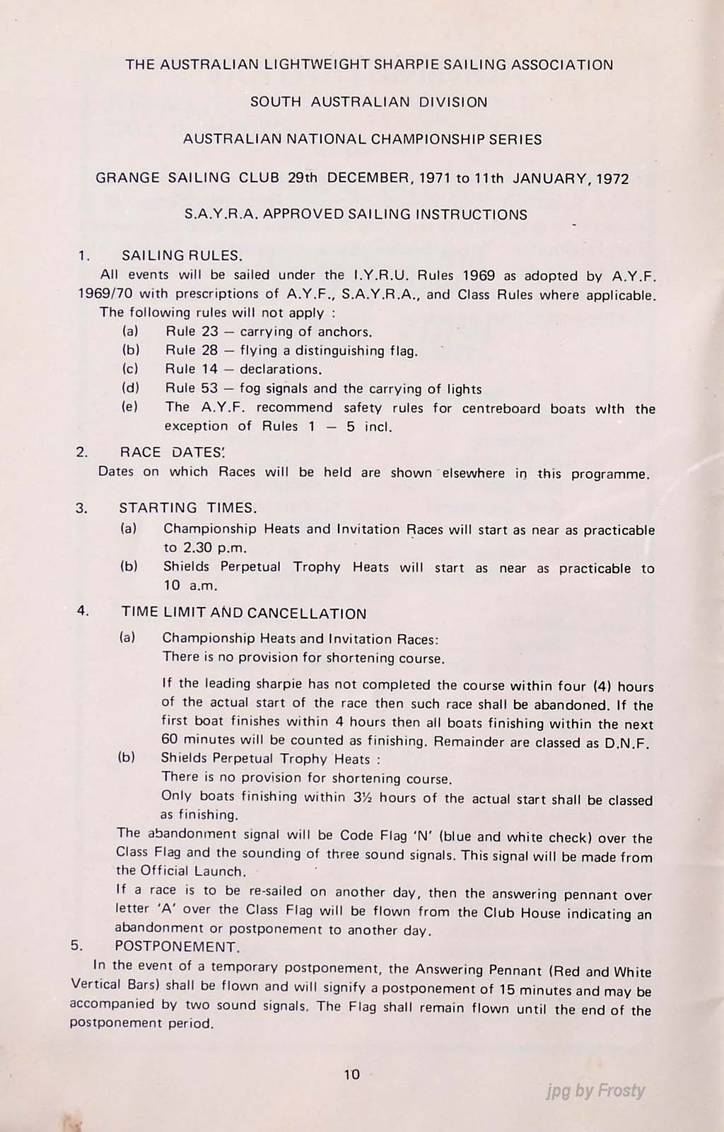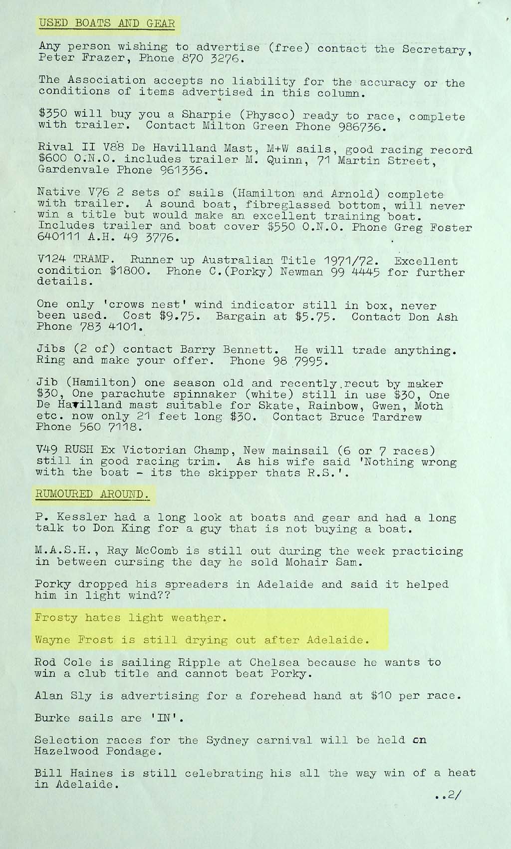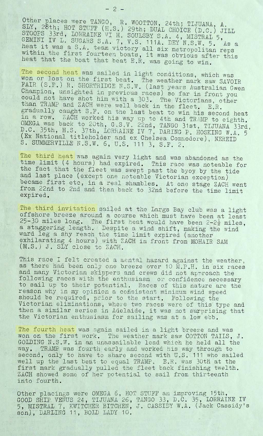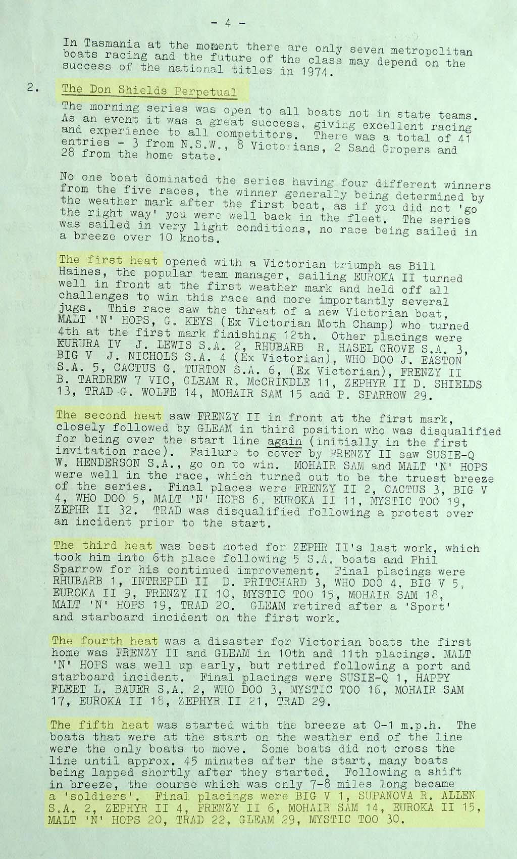 The results were taken from the Victorian Sharpie Association Newsletter dated February 1972