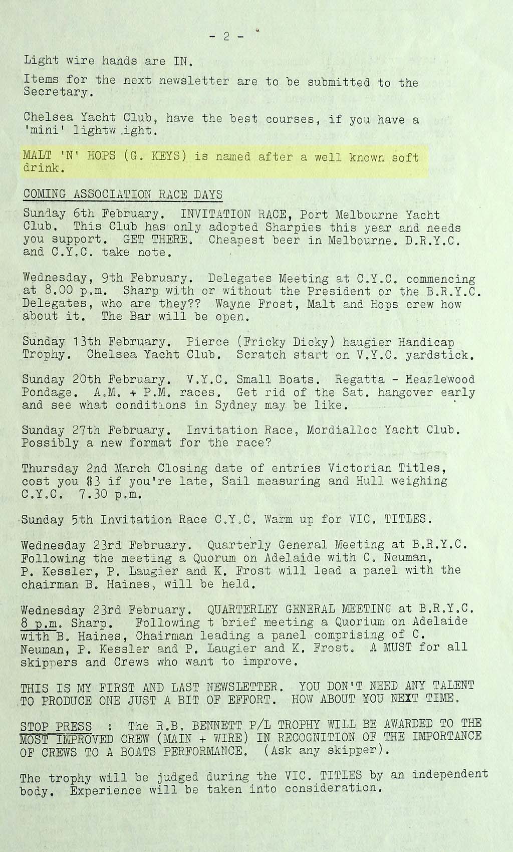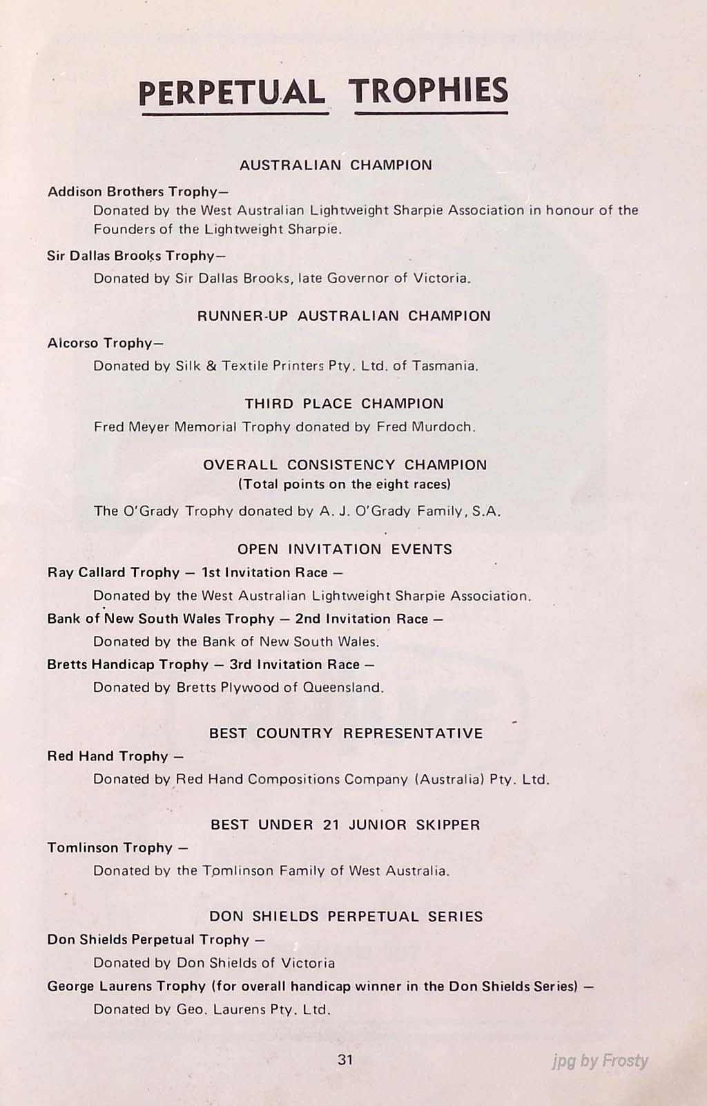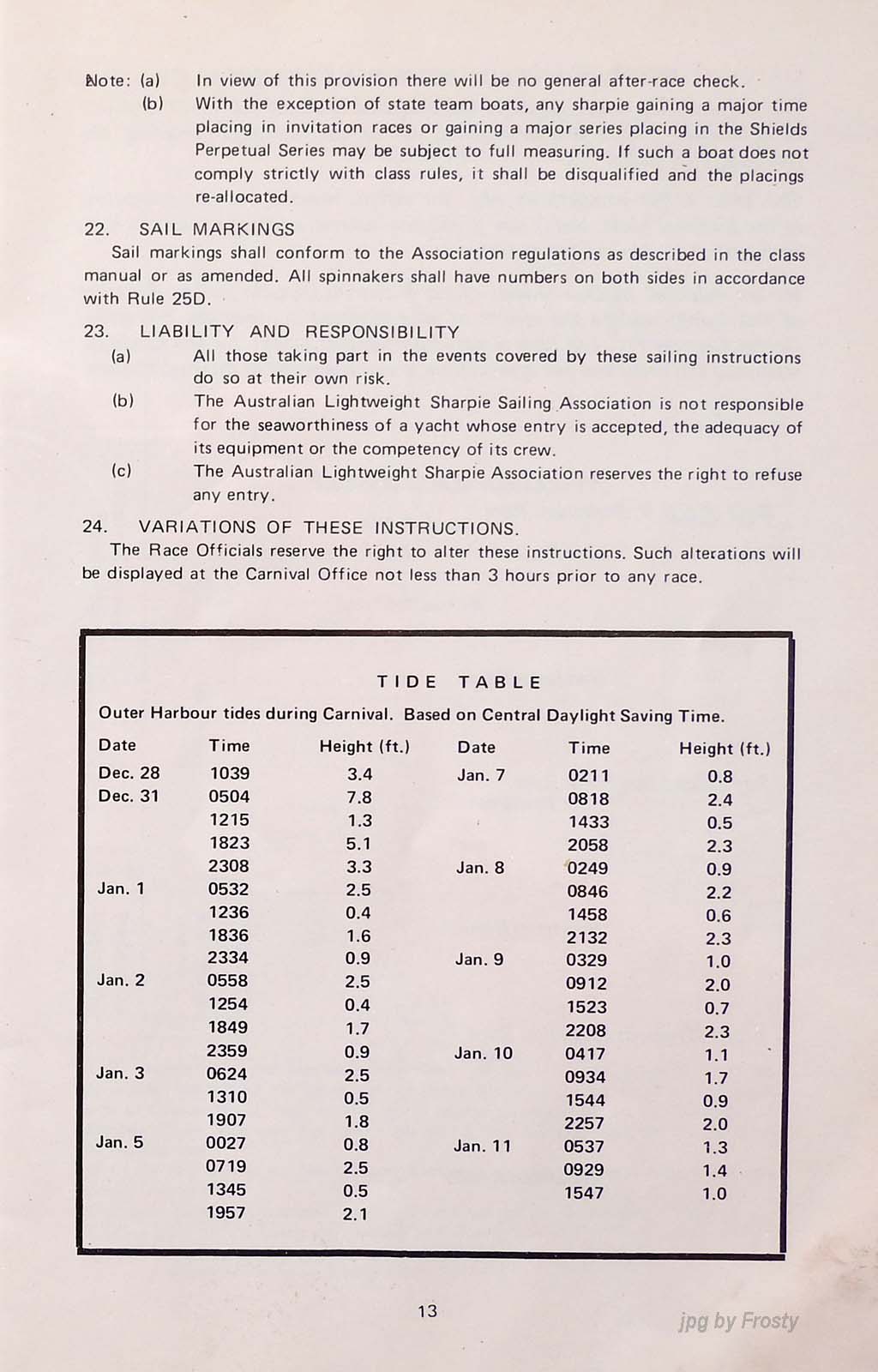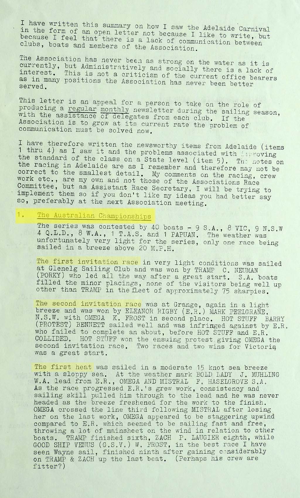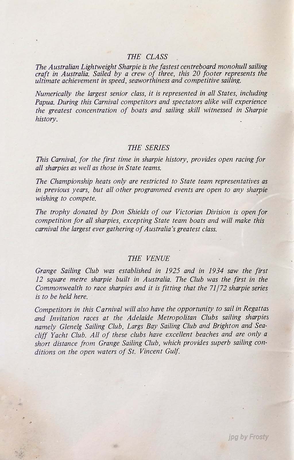 The results were taken from the Victorian Sharpie Association Newsletter dated February 1972